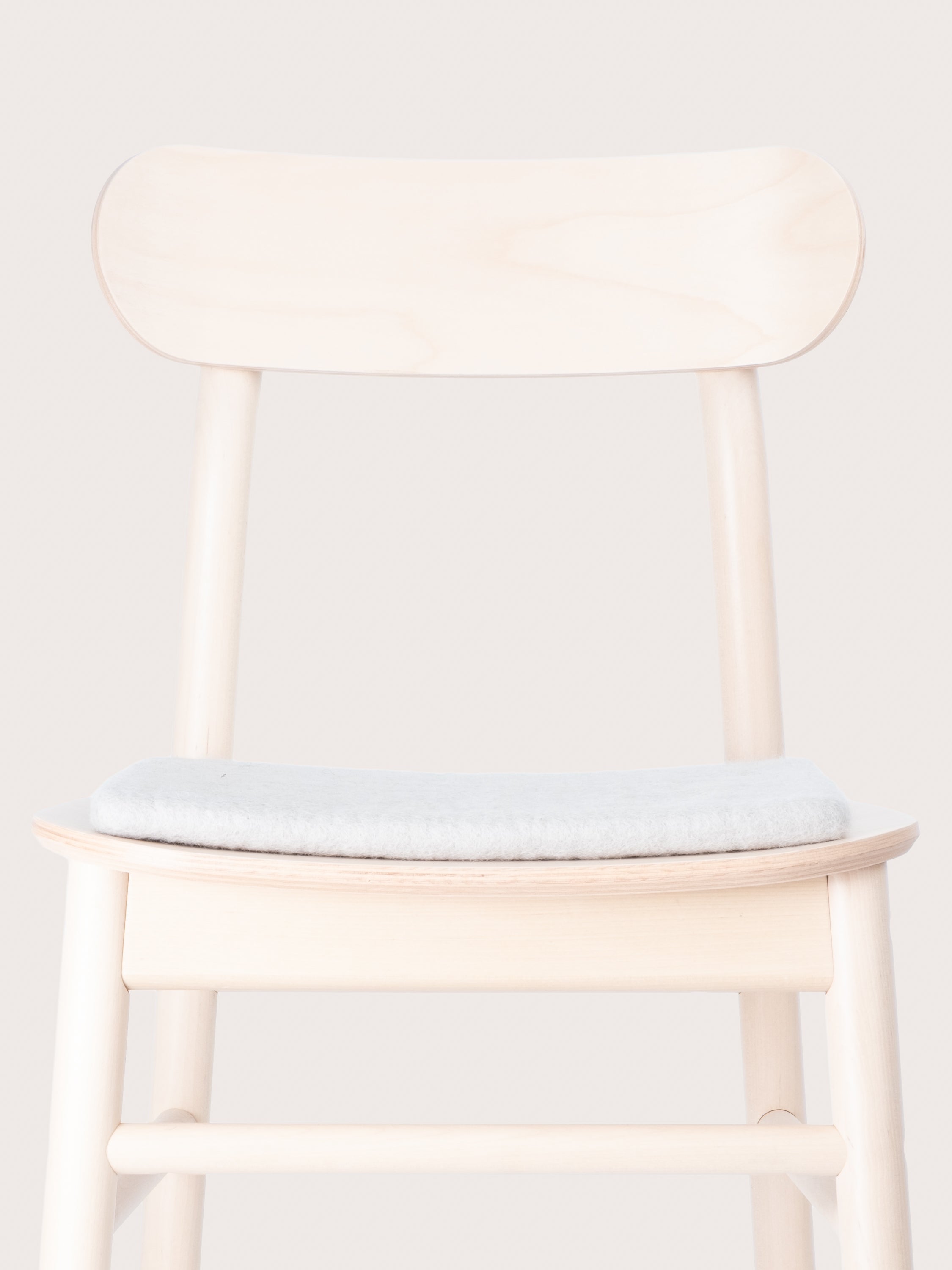 Quadratische, hellgraue flache Sitzauflage aus reiner Schurwolle.