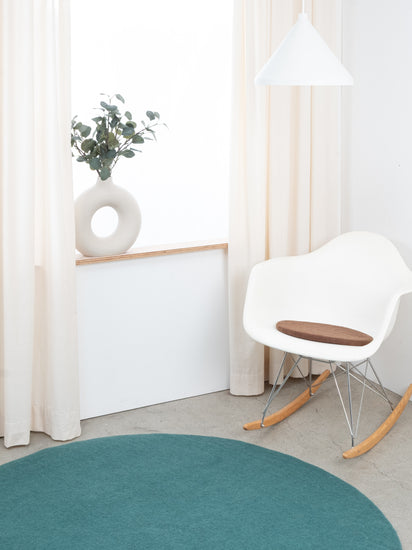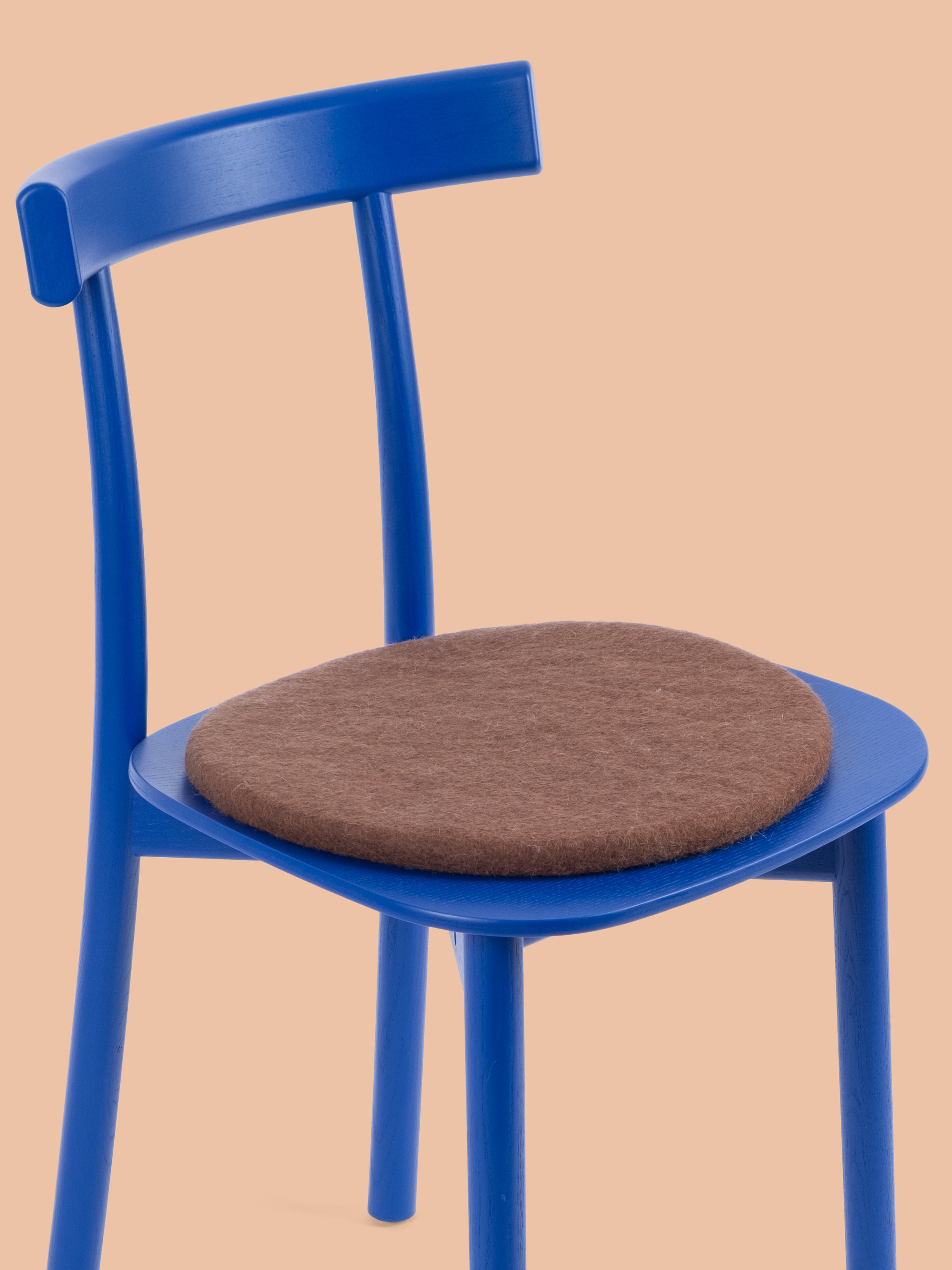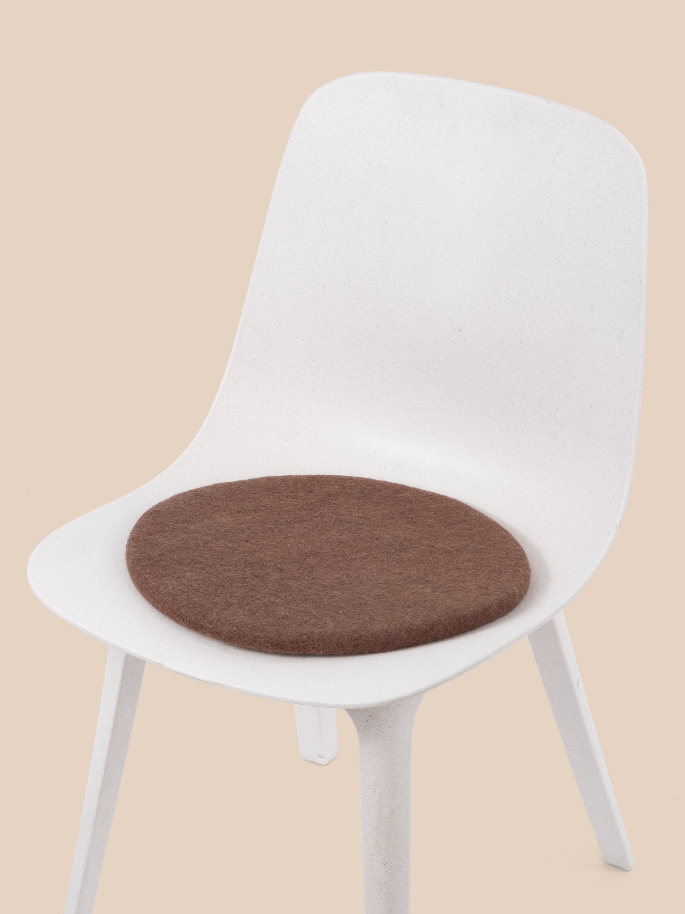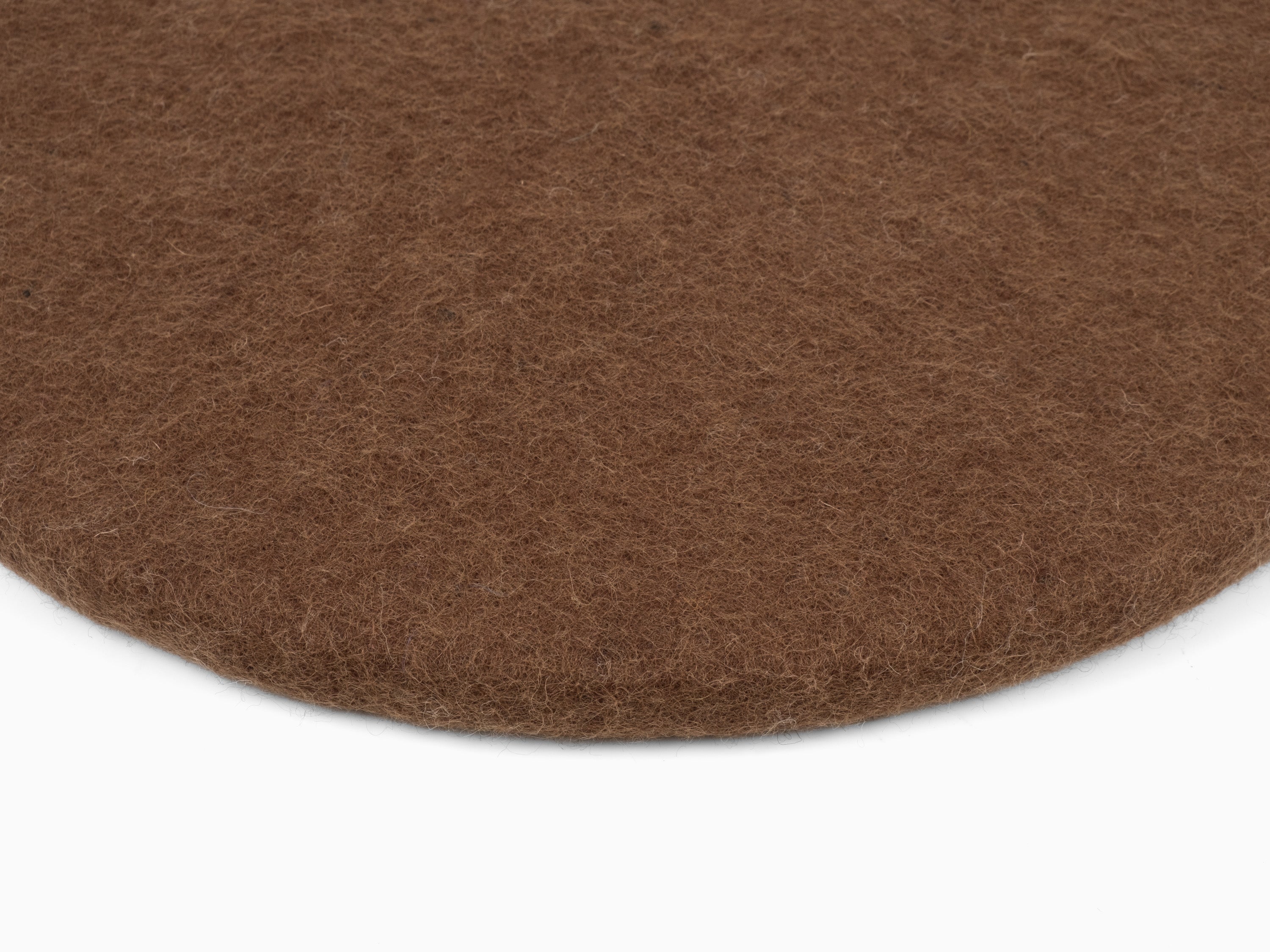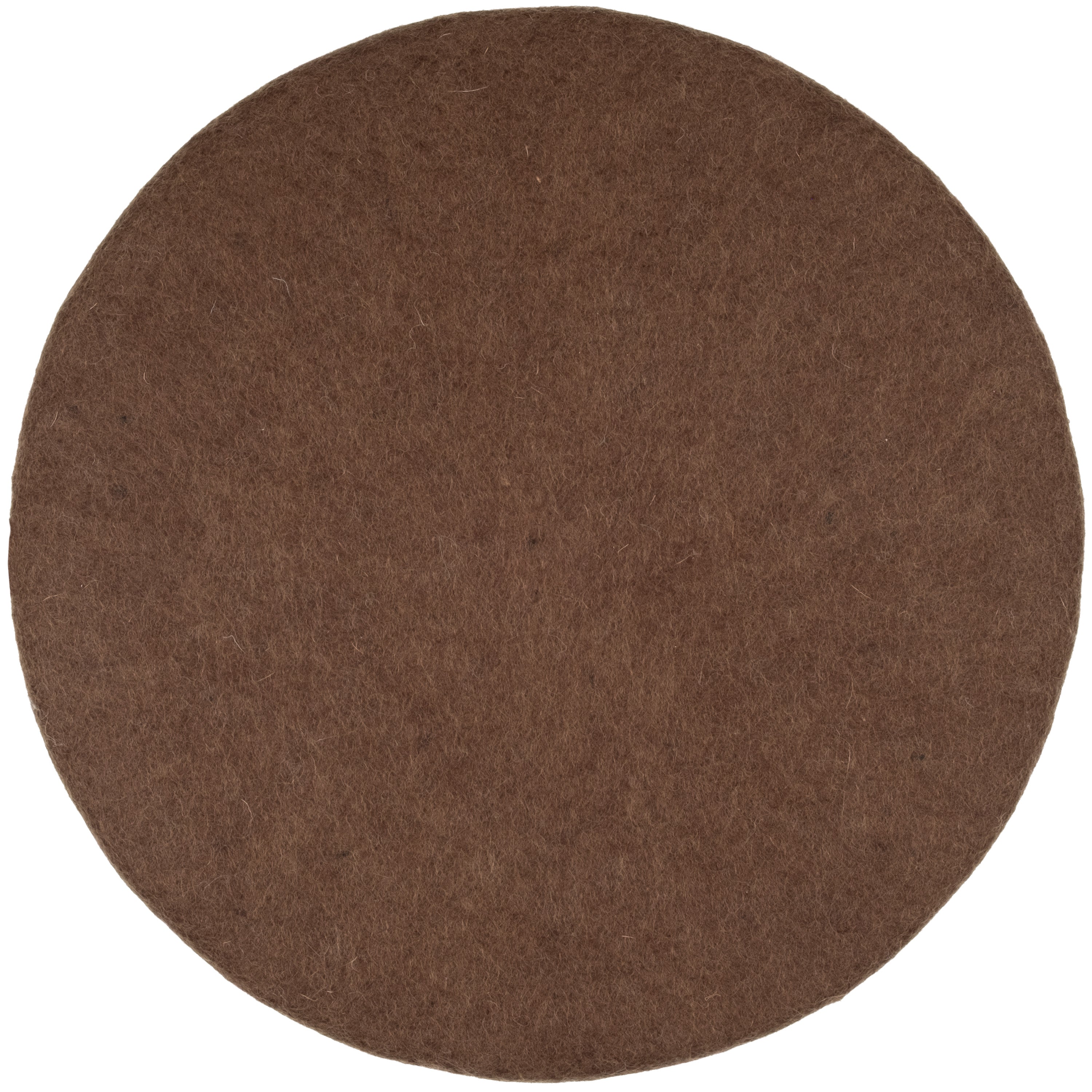 Runde, braune flache Sitzauflage aus reiner Schurwolle.