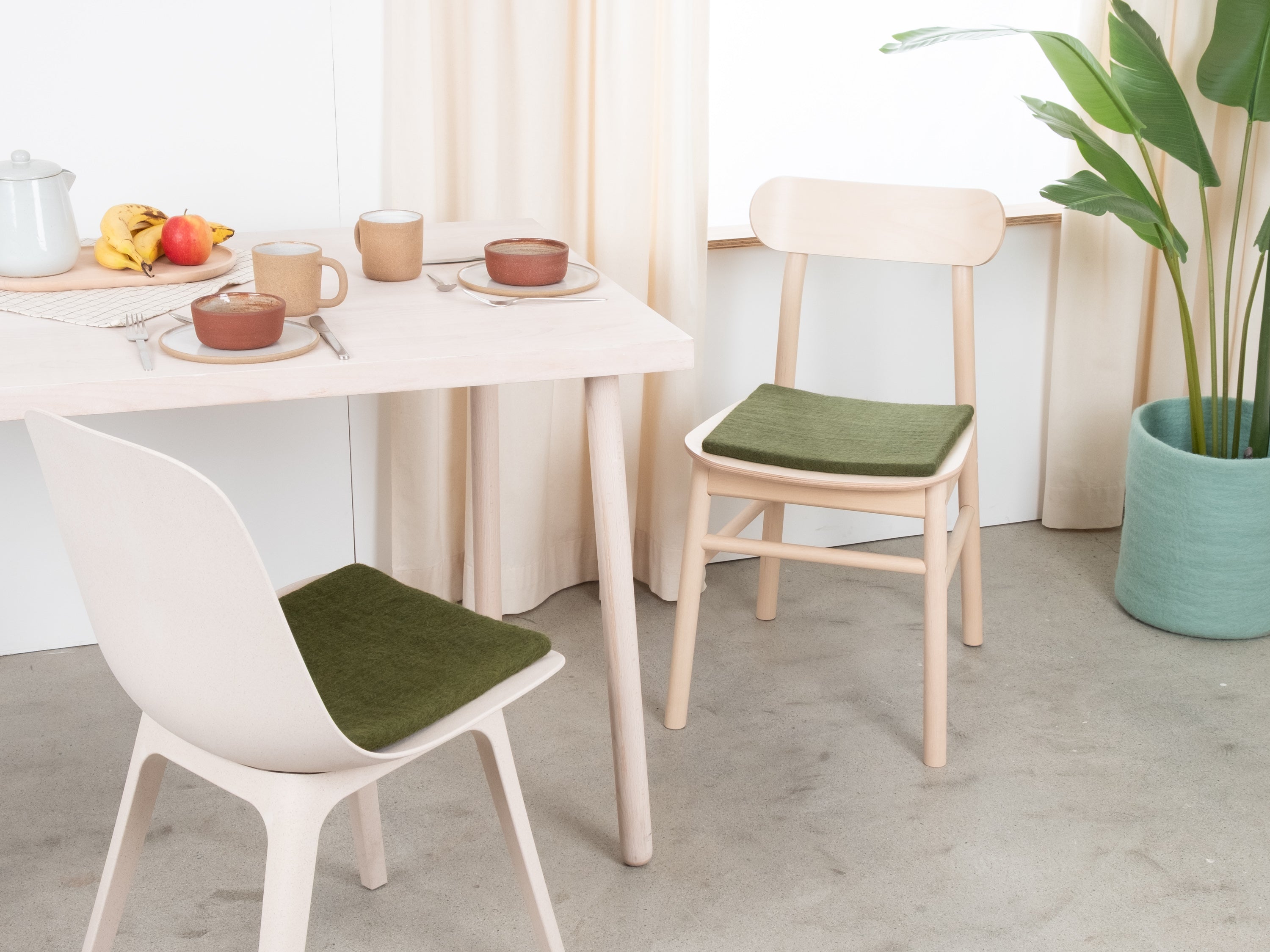 Die dunkelgrüne, flache Sitzauflage Jost bringt Wärme und Weichheit auf deinen Lieblingsstuhl. Gefertigt aus reiner Schurwolle, von Hand in Nepal hergestellt und unter fairen Bedingungen produziert. myfelt Sitzauflagen sind wasser- und schmutzabweisend und beidseitig verwendbar.