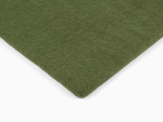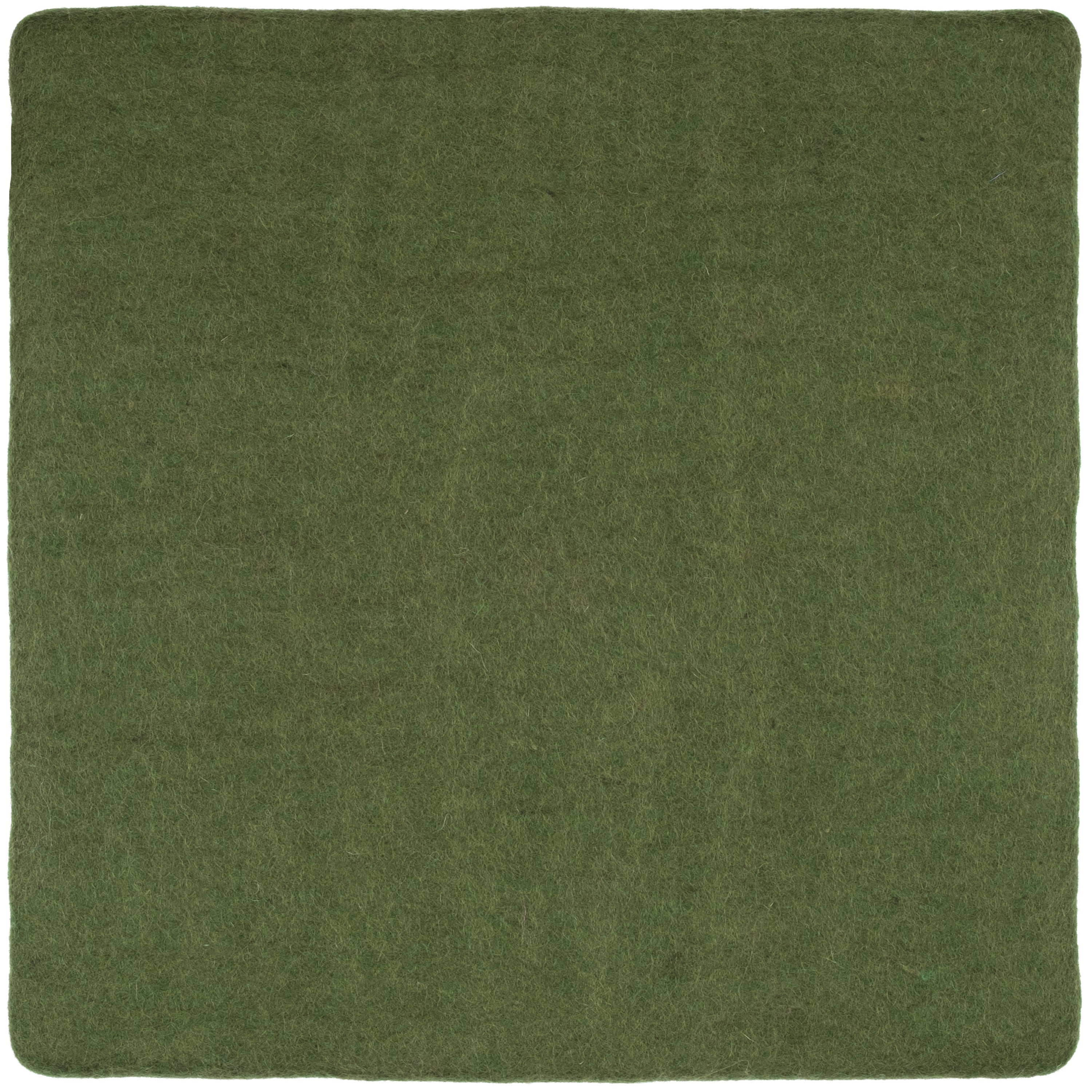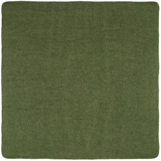 Quadratische, dunkelgrüne flache Sitzauflage aus reiner Schurwolle.