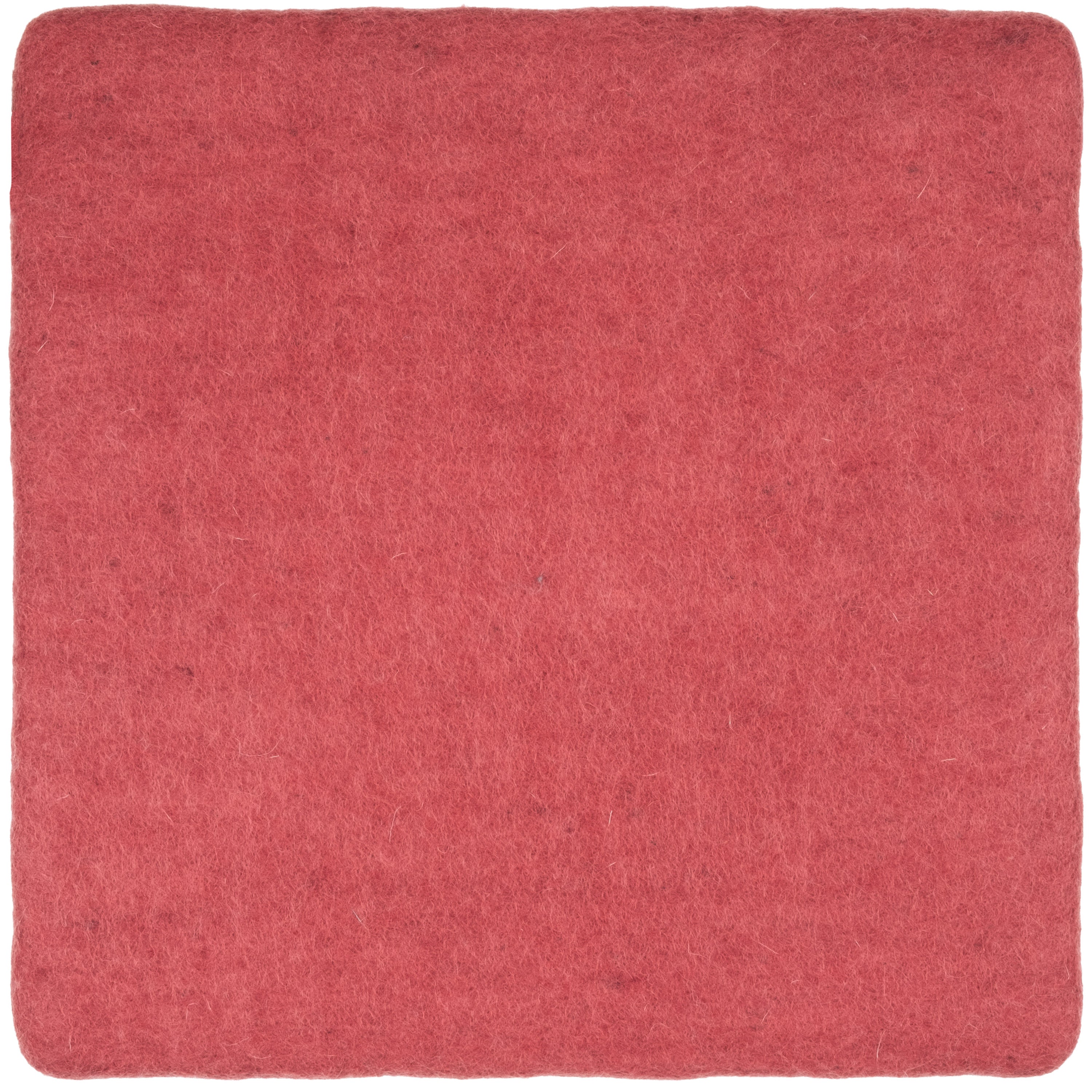 Quadratische, weinrote flache Sitzauflage aus reiner Schurwolle.