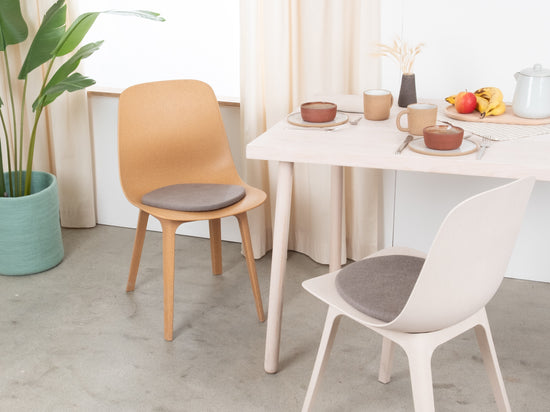 Die graue, flache Sitzauflage Kian bringt Wärme und Weichheit auf deinen Lieblingsstuhl. Gefertigt aus reiner Schurwolle, von Hand in Nepal hergestellt und unter fairen Bedingungen produziert. myfelt Sitzauflagen sind wasser- und schmutzabweisend und beidseitig verwendbar.