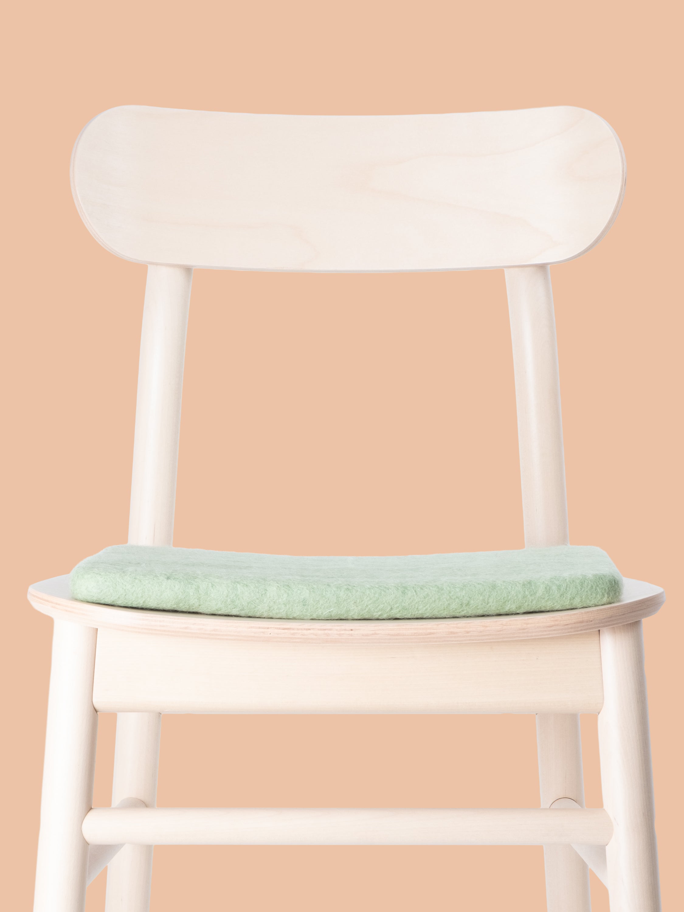 Die hellgrüne, flache Sitzauflage Lasse bringt Wärme und Weichheit auf deinen Lieblingsstuhl. Gefertigt aus reiner Schurwolle, von Hand in Nepal hergestellt und unter fairen Bedingungen produziert. myfelt Sitzauflagen sind wasser- und schmutzabweisend und beidseitig verwendbar.