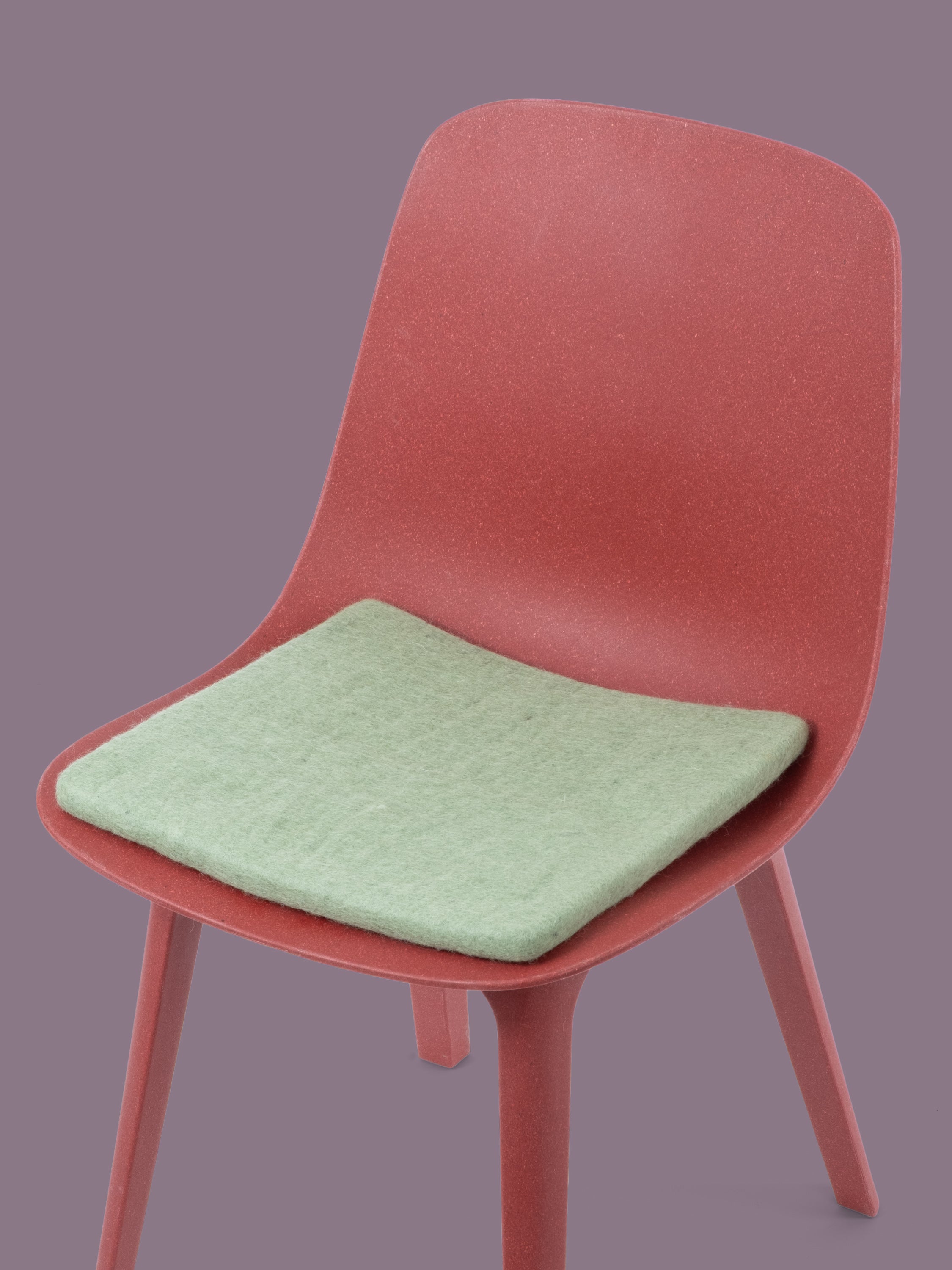 Quadratische, hellgrüne flache Sitzauflage aus reiner Schurwolle.