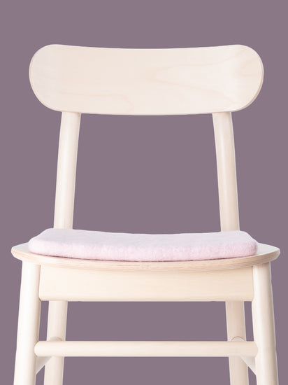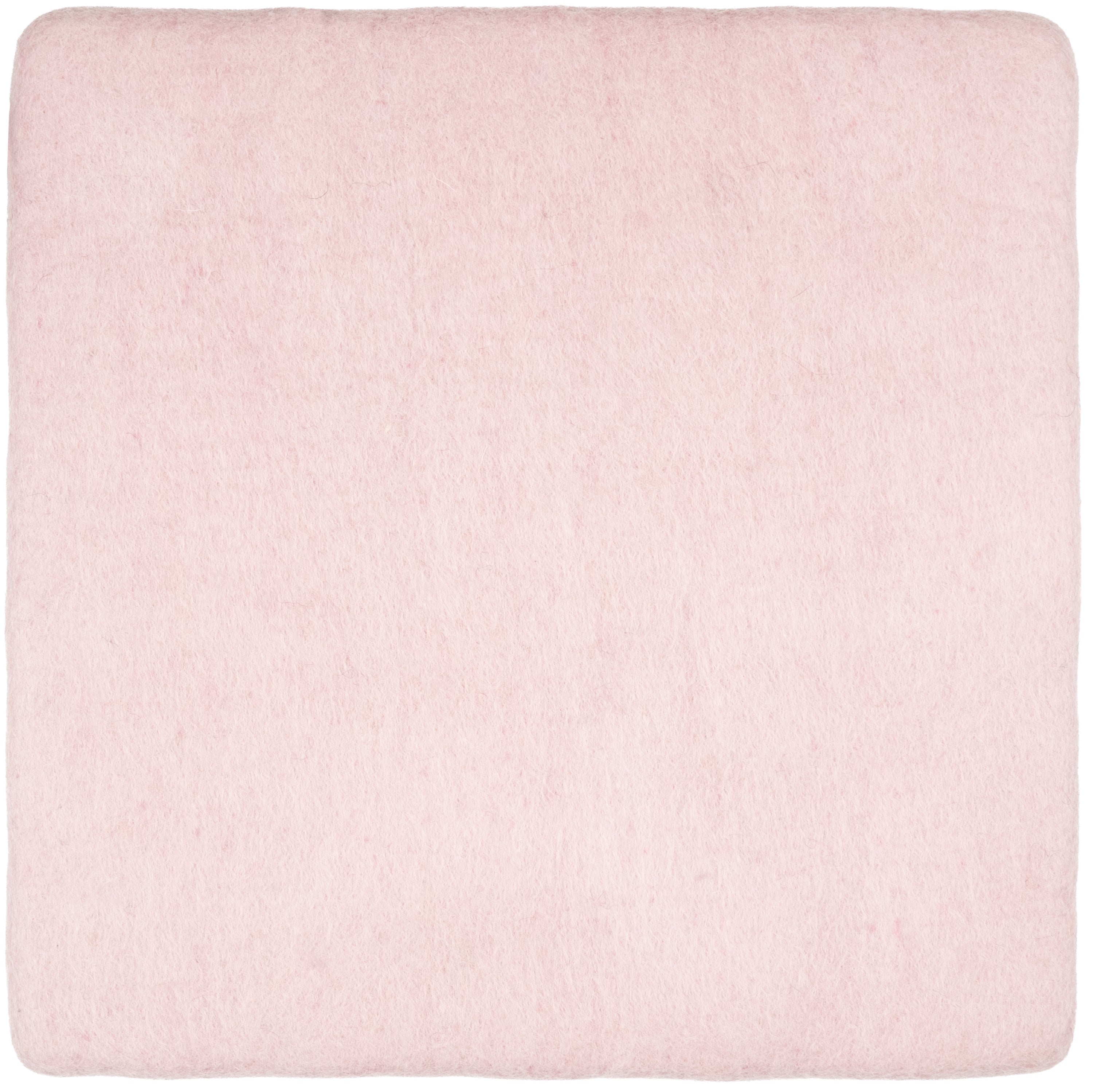 Quadratische, zartrosa flache Sitzauflage aus reiner Schurwolle.