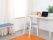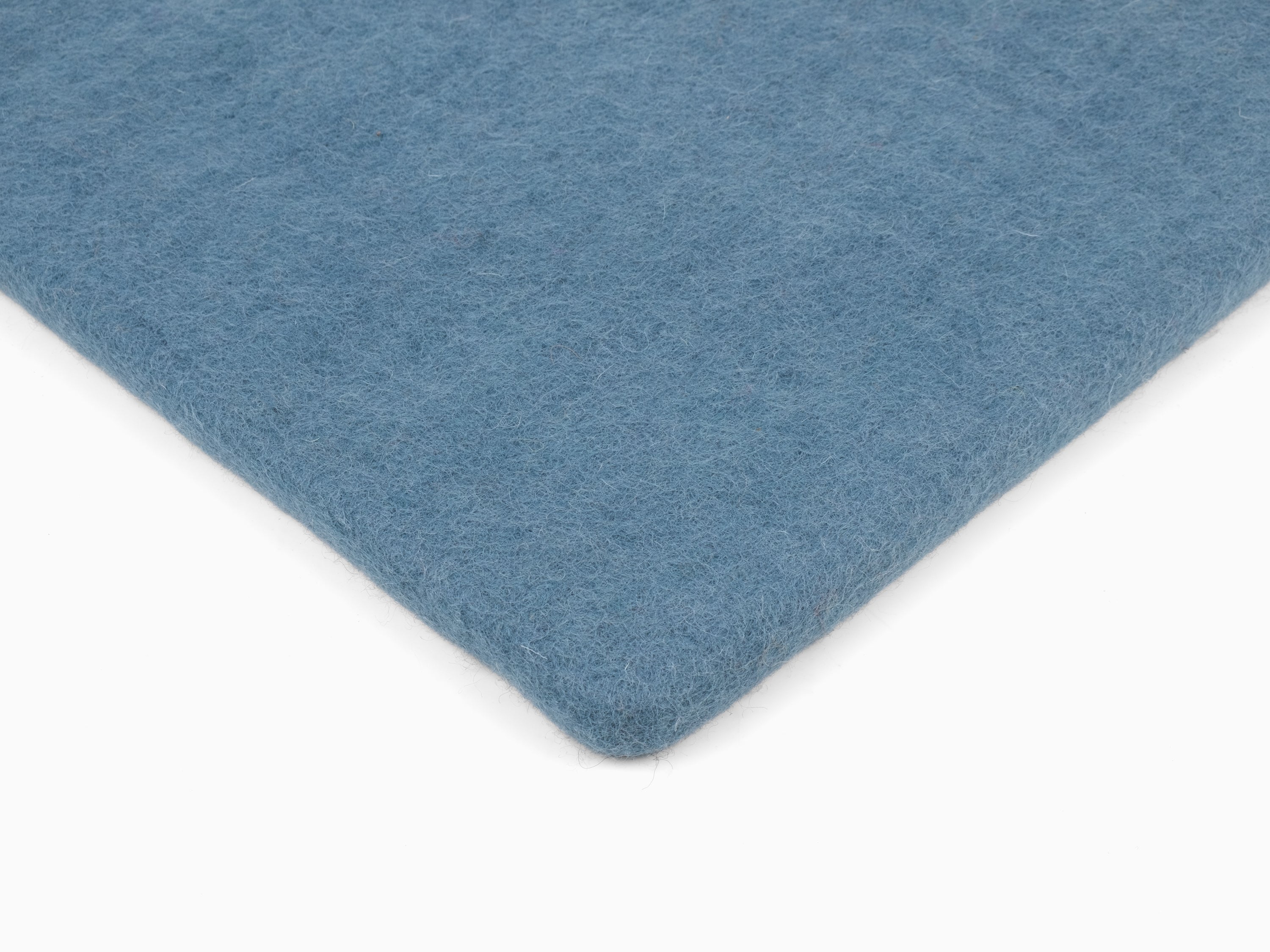 Die blaue, flache Sitzauflage Nilo bringt Wärme und Weichheit auf deinen Lieblingsstuhl. Gefertigt aus reiner Schurwolle, von Hand in Nepal hergestellt und unter fairen Bedingungen produziert. myfelt Sitzauflagen sind wasser- und schmutzabweisend und beidseitig verwendbar.