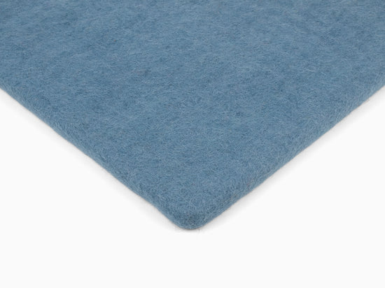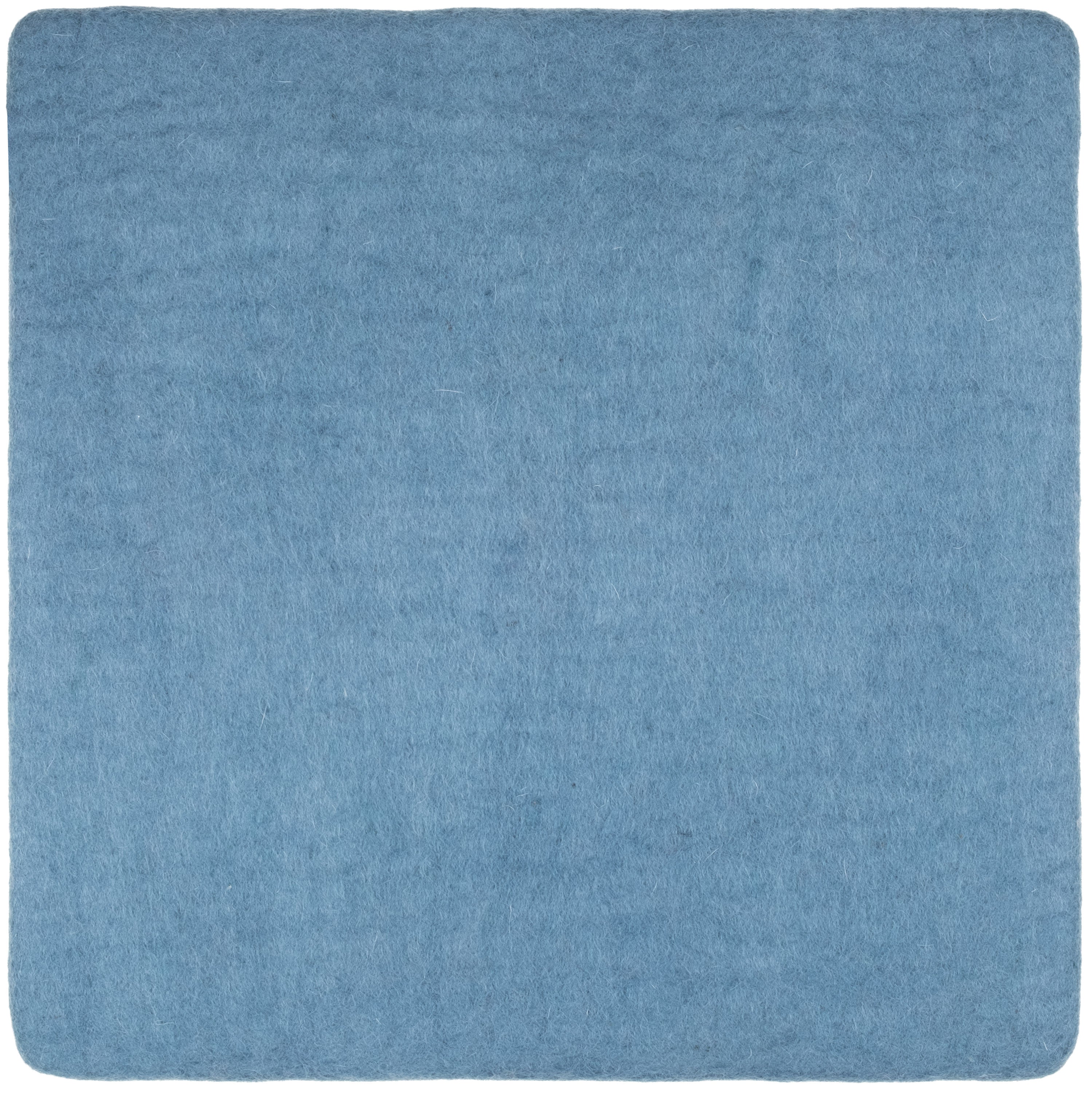 Quadratische, blaue flache Sitzauflage aus reiner Schurwolle.