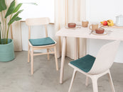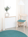 Quadratische, petrolfarbene flache Sitzauflage aus reiner Schurwolle.