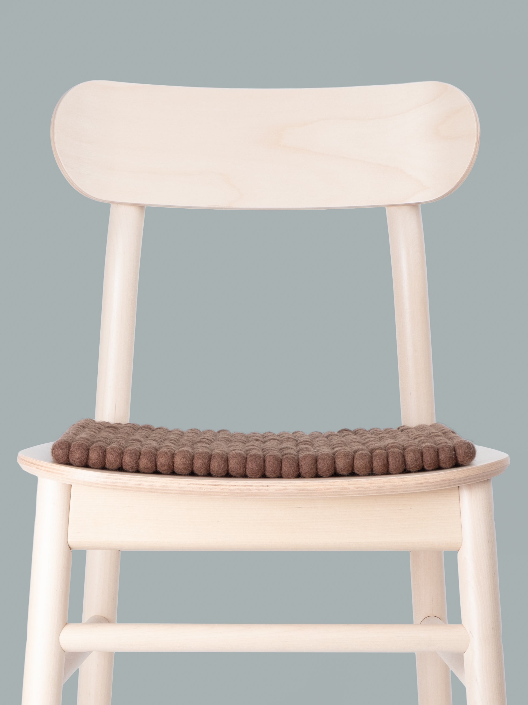 Quadratische, braune Sitzauflage aus reiner Schurwolle.