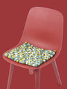 Quadratische, multifarbene Sitzauflage aus reiner Schurwolle.