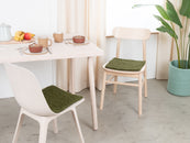 Die dunkelgrüne Sitzauflage Jost bringt Wärme und Weichheit auf deinen Lieblingsstuhl. Gefertigt aus reiner Schurwolle, von Hand in Nepal hergestellt und unter fairen Bedingungen produziert. myfelt Sitzauflagen sind wasser- und schmutzabweisend und beidseitig verwendbar.