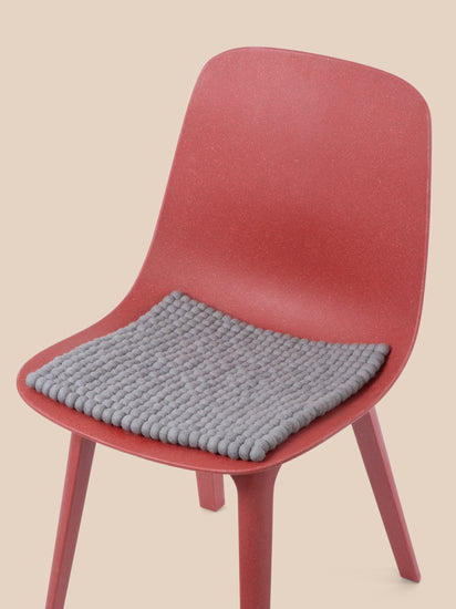 Quadratische, graue Sitzauflage aus reiner Schurwolle.