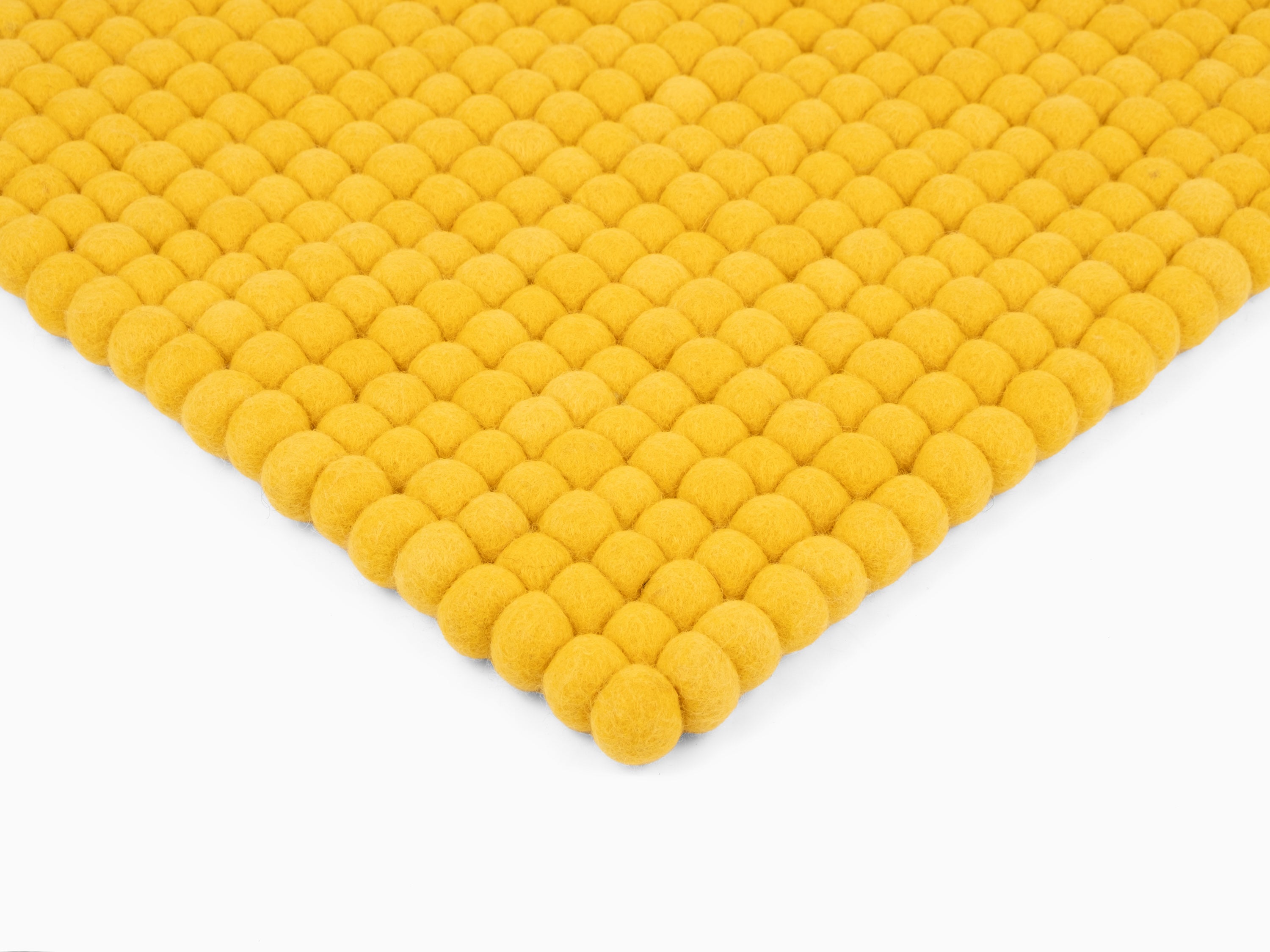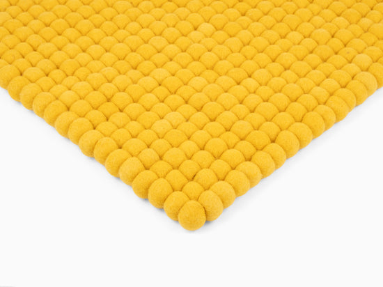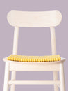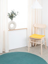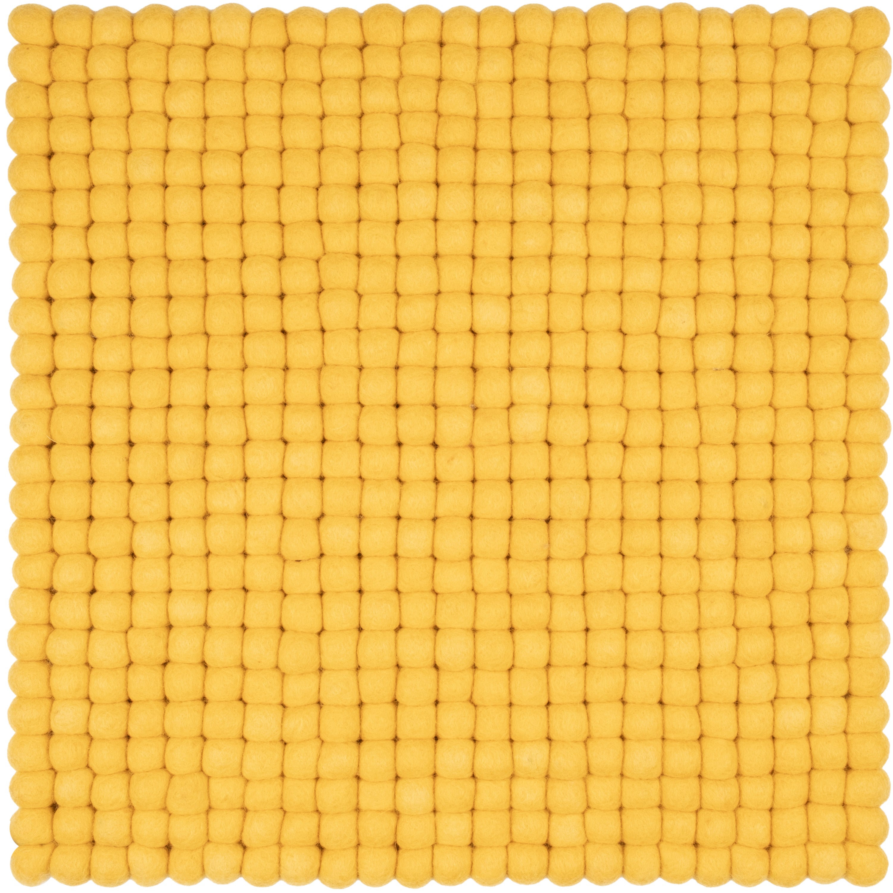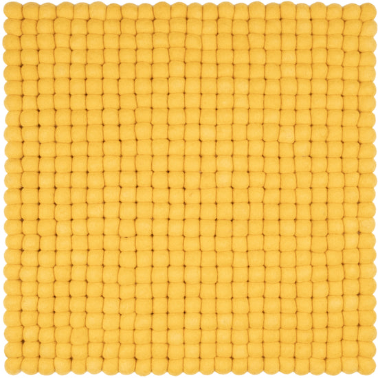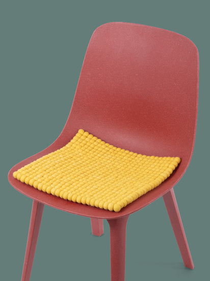 Quadratische, gelbe Sitzauflage aus reiner Schurwolle.