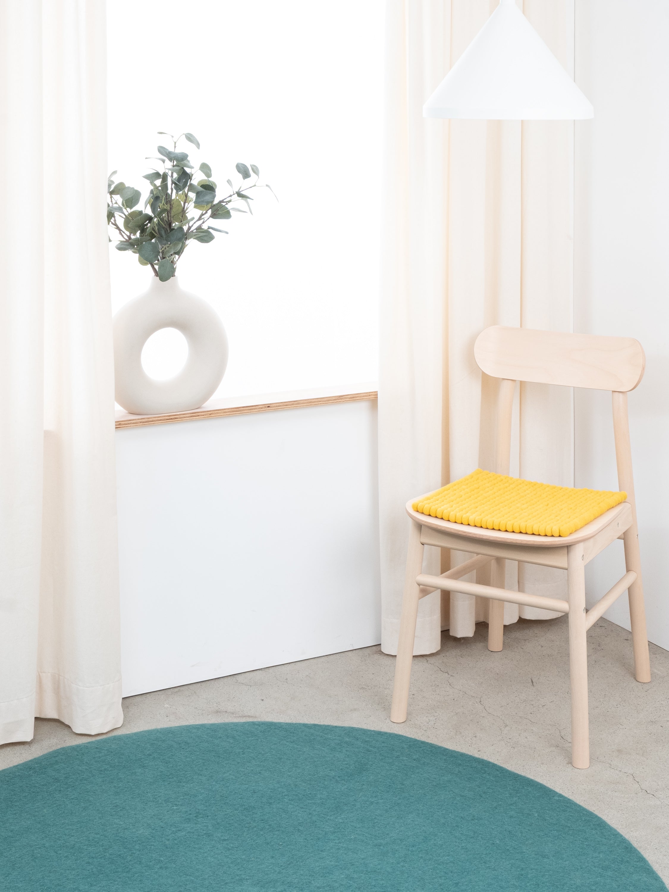 Die gelbe Sitzauflage Kira bringt Wärme und Weichheit auf deinen Lieblingsstuhl. Gefertigt aus reiner Schurwolle, von Hand in Nepal hergestellt und unter fairen Bedingungen produziert. myfelt Sitzauflagen sind wasser- und schmutzabweisend und beidseitig verwendbar.