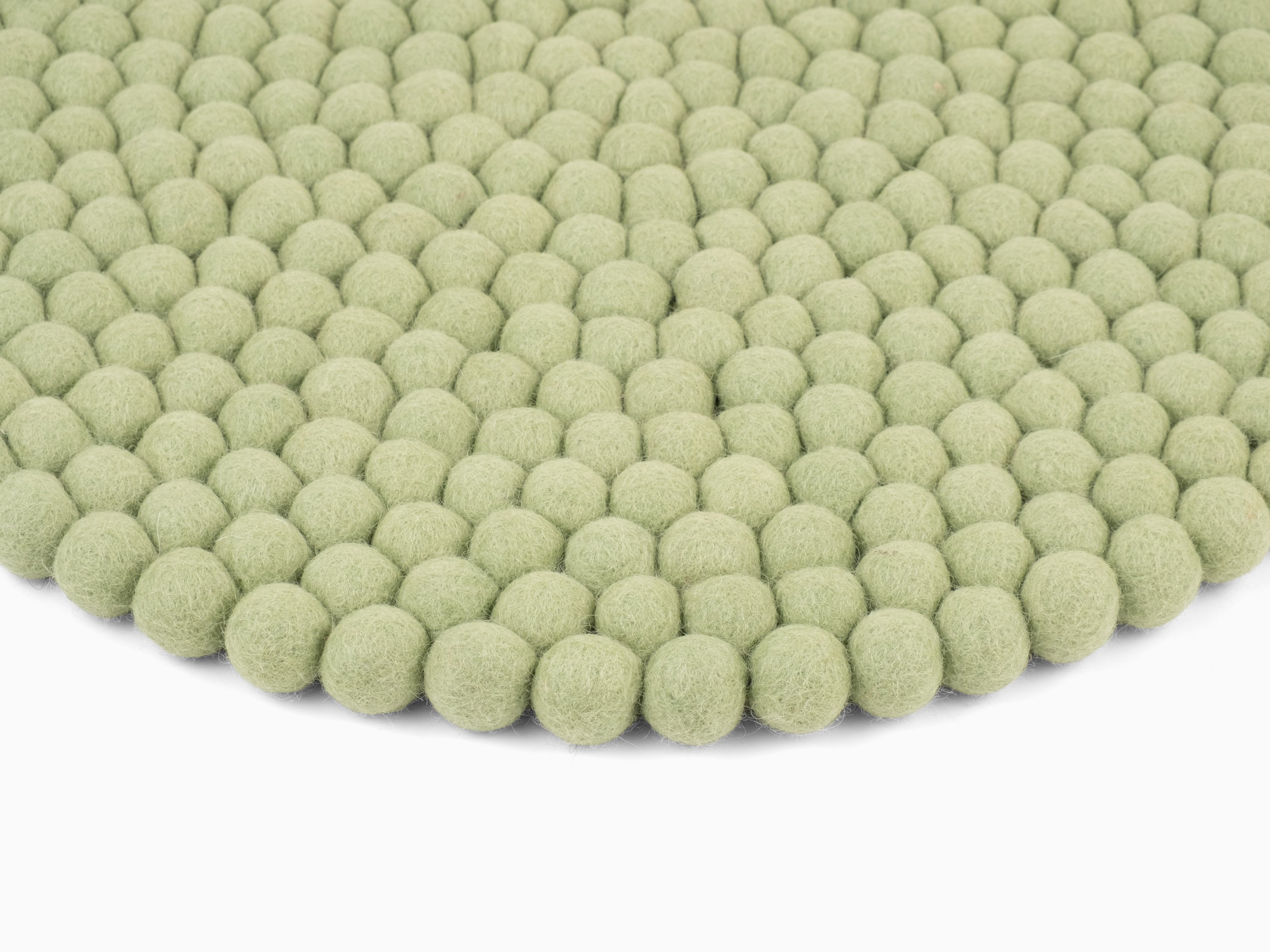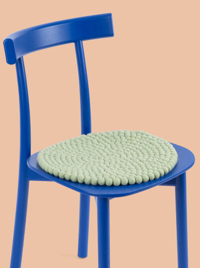 Runde, hellgrüne Sitzauflage aus reiner Schurwolle.