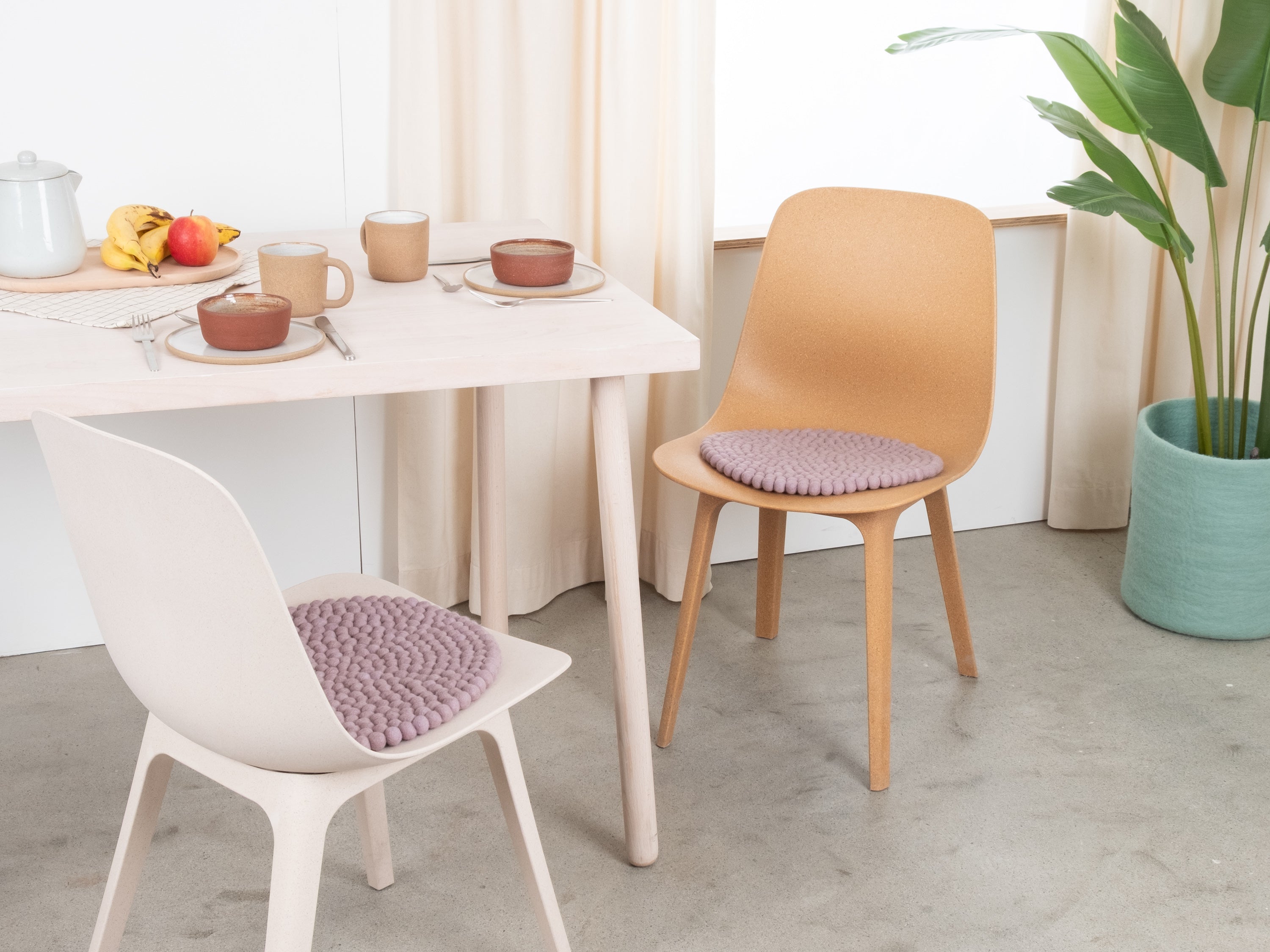 Die hellviolette Sitzauflage Marla bringt Wärme und Weichheit auf deinen Lieblingsstuhl. Gefertigt aus reiner Schurwolle, von Hand in Nepal hergestellt und unter fairen Bedingungen produziert. myfelt Sitzauflagen sind wasser- und schmutzabweisend und beidseitig verwendbar.