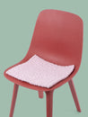 Quadratische, zartrosa Sitzauflage aus reiner Schurwolle.