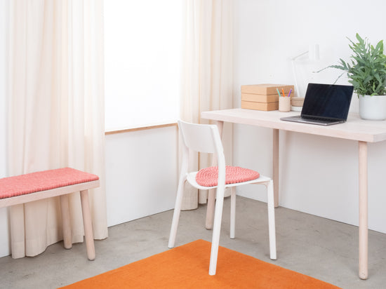 Die korallenrosa Sitzauflage Vera bringt Wärme und Weichheit auf deinen Lieblingsstuhl. Gefertigt aus reiner Schurwolle, von Hand in Nepal hergestellt und unter fairen Bedingungen produziert. myfelt Sitzauflagen sind wasser- und schmutzabweisend und beidseitig verwendbar.