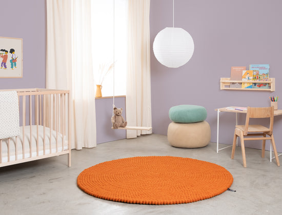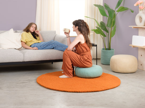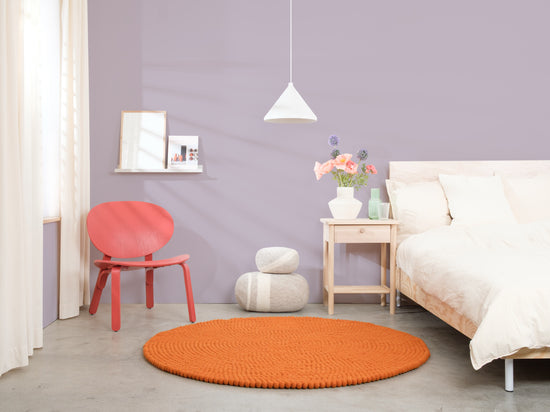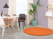 Afra brengt een warme oranje tint in de ruimte. Gastvrij en energiek zonder schreeuwerig te worden. Perfect om koele kamers te verwarmen of accenten te zetten. Robuust, onderhoudsvriendelijk en aangenaam onder de voeten. Handgemaakt in Nepal – 100 % scheerwol.