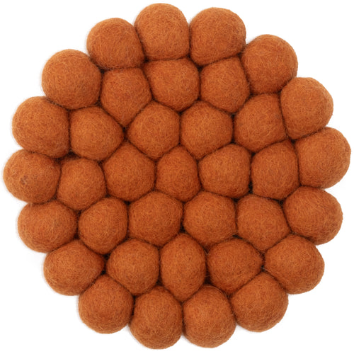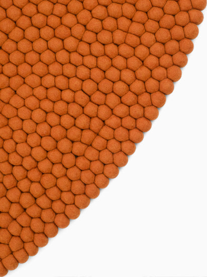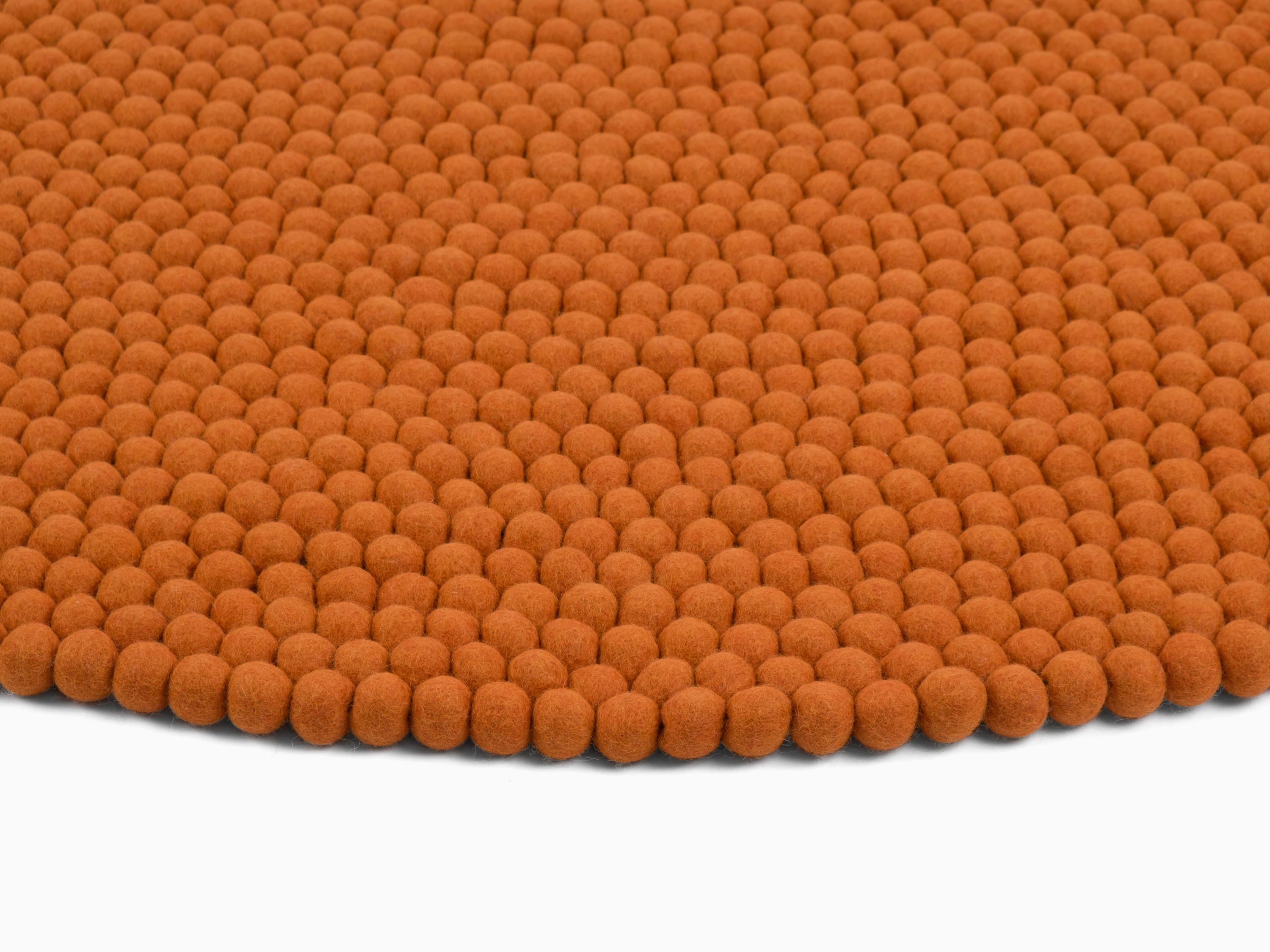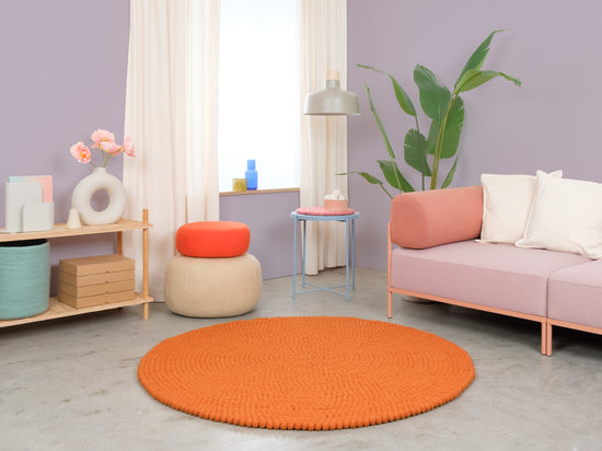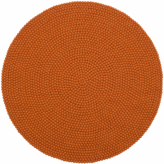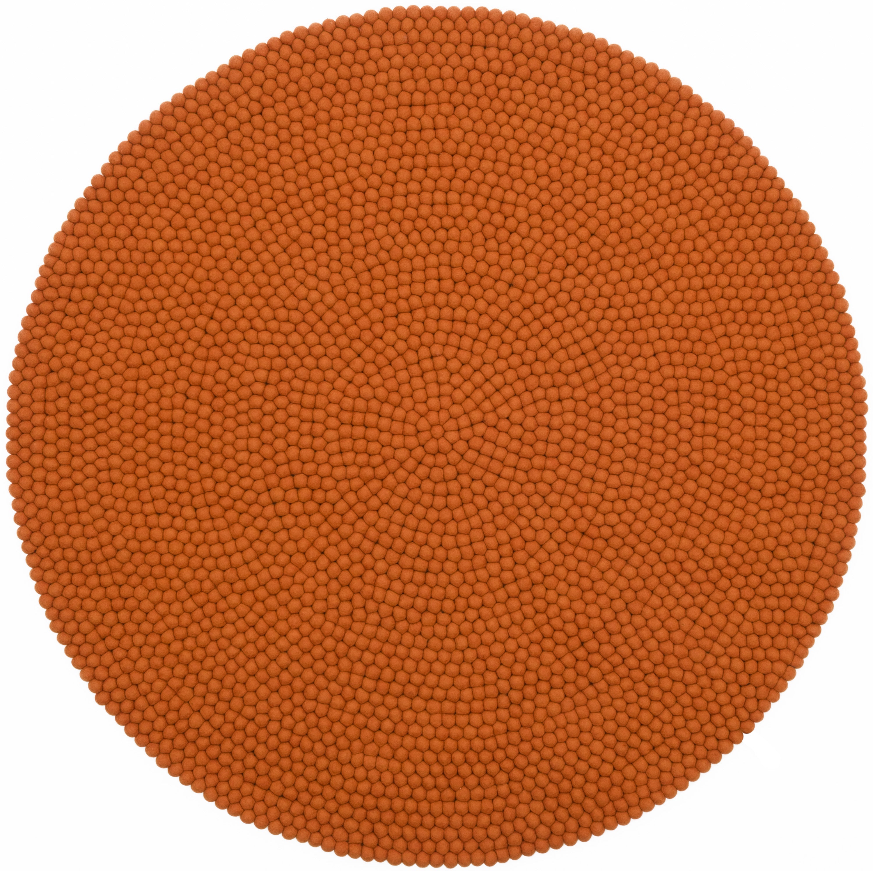 Rond, veelkleurig Vilten boltapijt van zuivere scheerwol.
