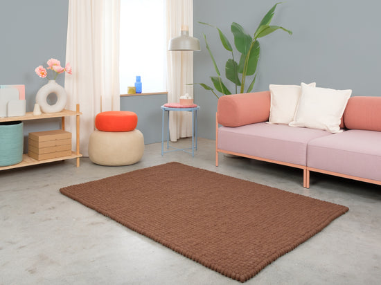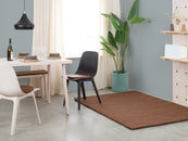 Egon kiest voor warm chocoladebruin. Het kleed geeft elke ruimte gronding, geborgenheid en structuur. Ideaal voor leeshoeken en woonruimtes die wel wat warmte kunnen gebruiken. Slijtvast, vormvast en prettig aan de voeten. Handgemaakt in Nepal – 100 % scheerwol.