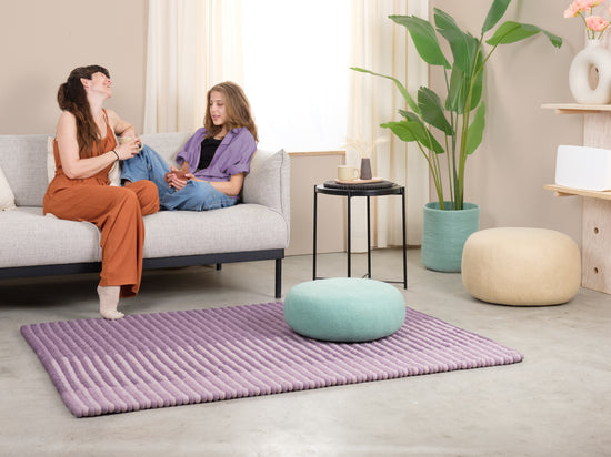 Een fluistering in violet. Van donker naar licht. Van nu naar zo. Fade is een kleed als een herinnering – zacht, vertrouwd, dromerig. Wie erop stapt, voelt: Stilte heeft ook diepte. Kleur kan ook stil zijn.