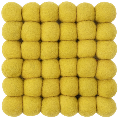 Kata is een vilten bolletjeskleed in fris geelgroen. Stralend, vitaal en vol energie brengt het beweging in de ruimte – vrolijk accent in de woonkamer of lichtpunt op de werkplek. Zorgt voor levendigheid en lichtheid. Zacht, robuust en gemakkelijk te onderhouden. Handgemaakt in Nepal van 100 % scheerwol.