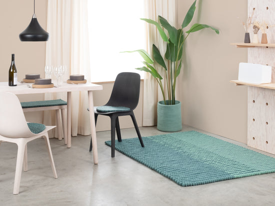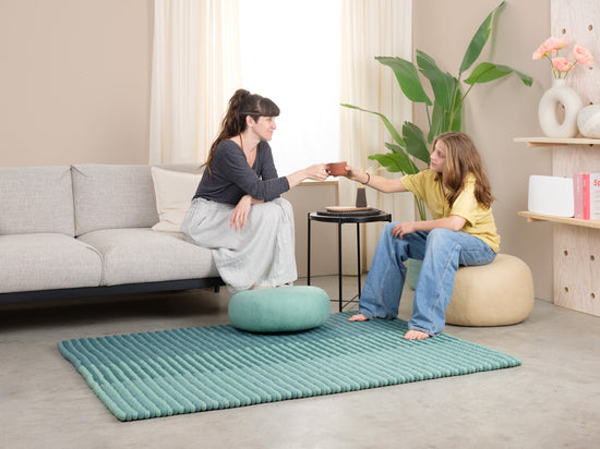 Een diepe toon in saliegroen. En daartussen: een vleugje licht. Sage brengt rust in de ruimte. En helderheid in het gevoel. Een kleed als een boswandeling zonder woorden.