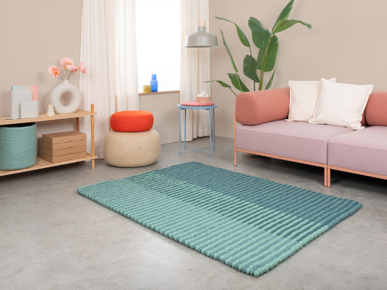 Rechthoekig vilten boltapijt van zuiver scheerwol.