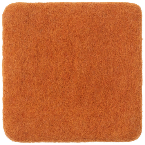 Afra brengt een warme oranje tint in de kamer. Het vilten tapijt oogt uitnodigend en energiek zonder opdringerig te zijn. Perfect om koele ruimtes op te warmen of accenten te leggen. Robuust, onderhoudsvriendelijk en prettig om op te lopen. Handgemaakt in Nepal van 100% pure scheerwol.