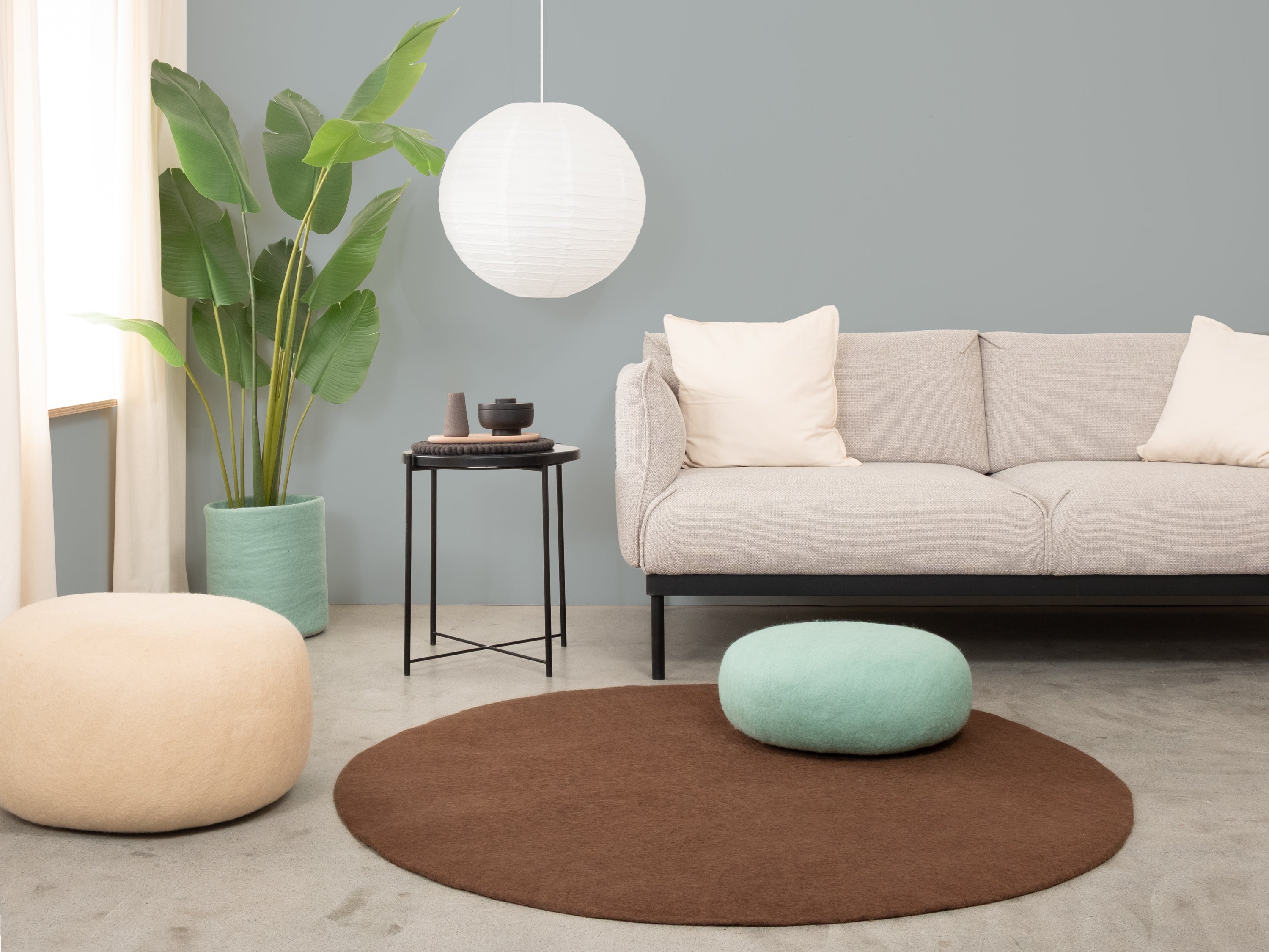 Rond vilten vloerkleed, gemaakt van zuiver scheerwol.