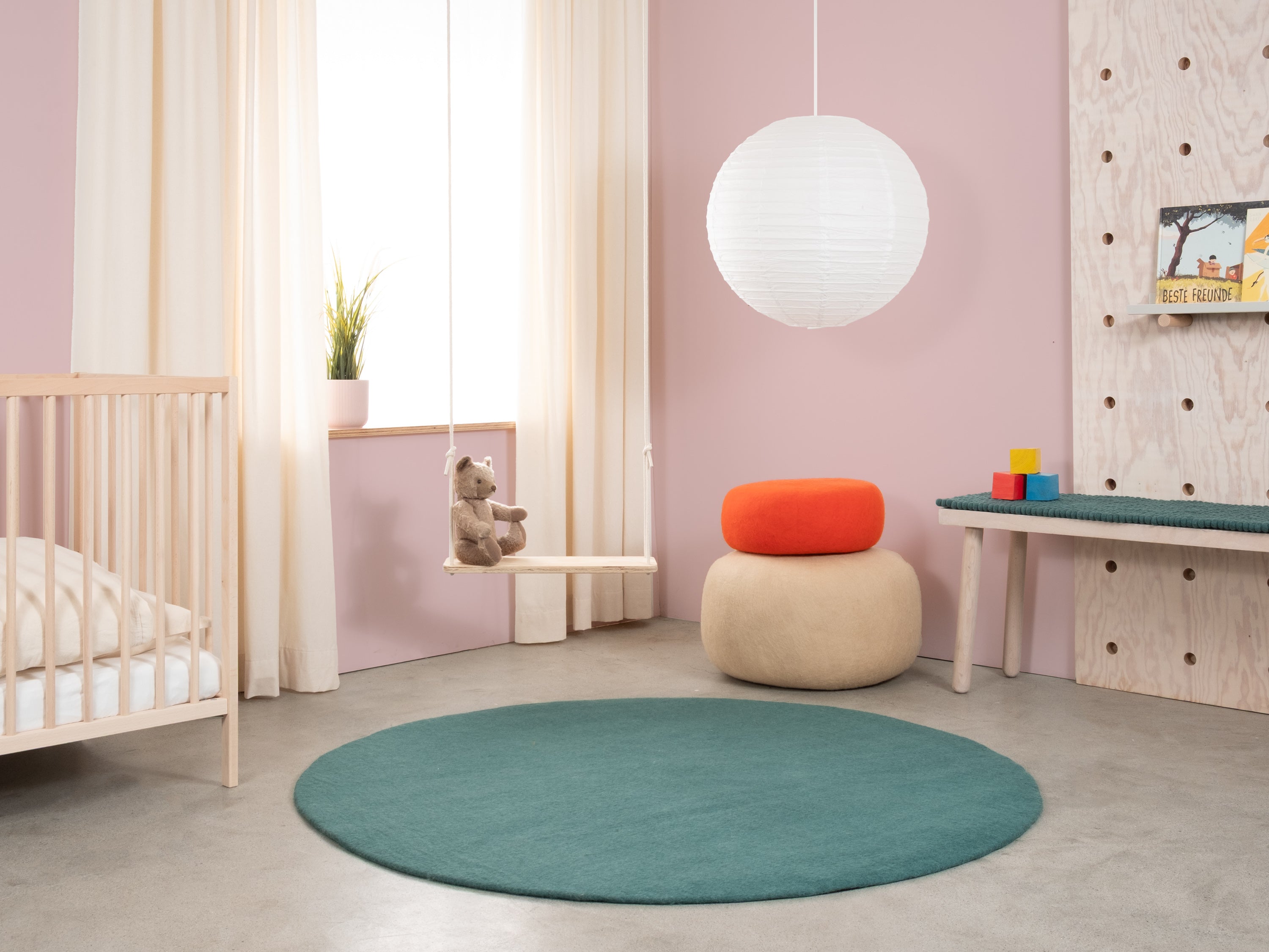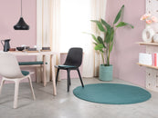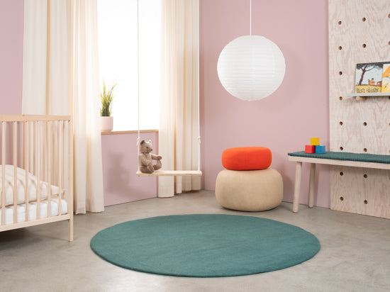 Noah is een vilten vloerkleed in diep petrol. Krachtig, helder en toch ontspannend – als statement of rustige basis. Past bij licht hout, beton en neutrale kleuren. Merkbaar zacht, duurzaam en onderhoudsvriendelijk. Handgemaakt in Nepal van 100 % scheerwol.