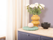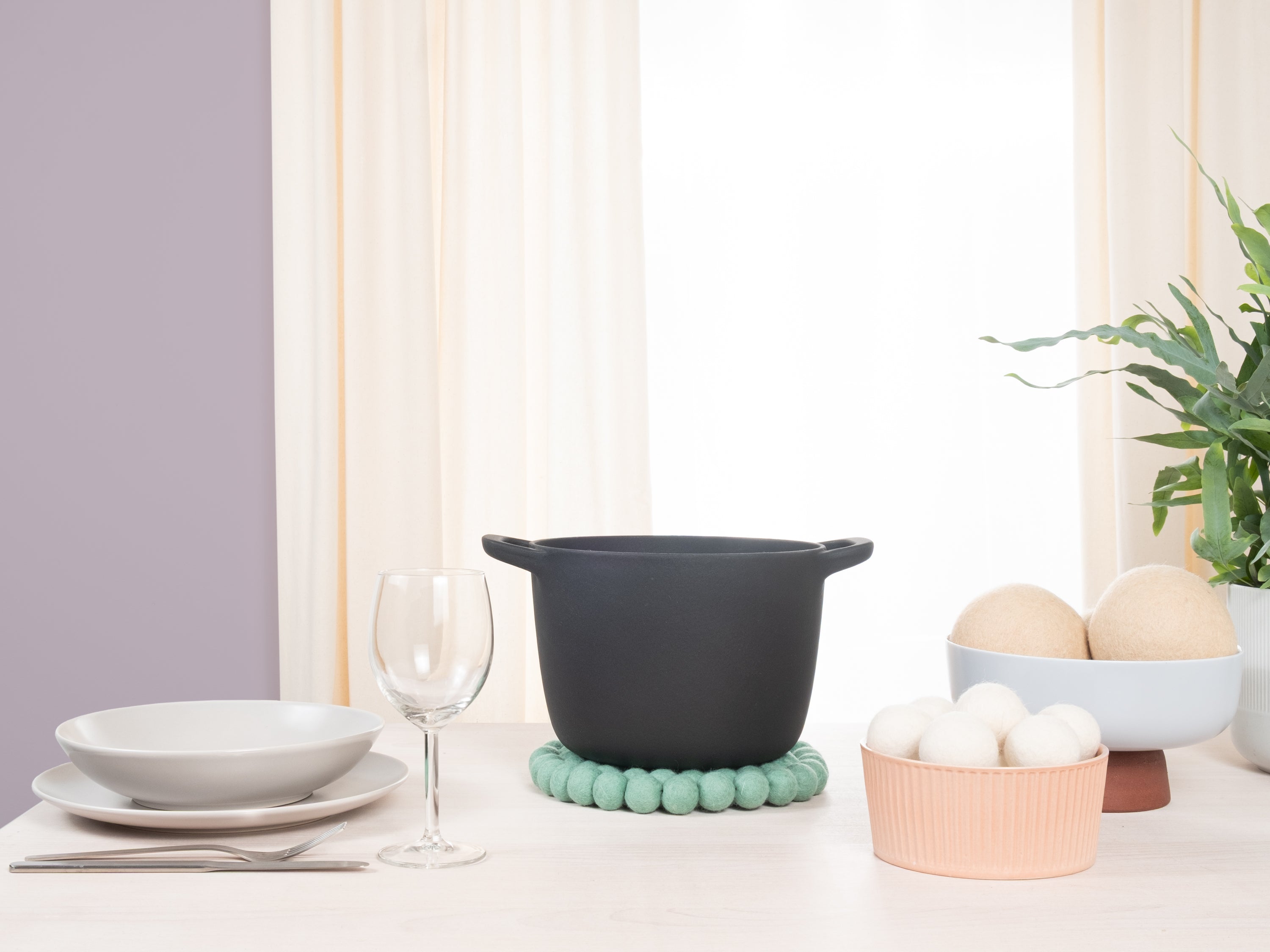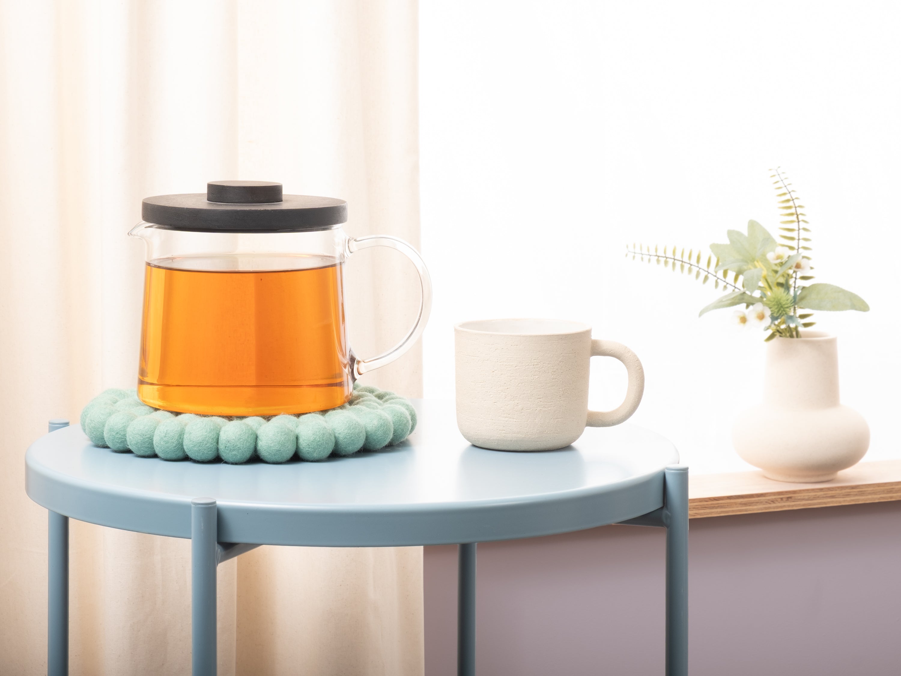 De onderzetter Fine in de kleur turquoise combineert functionaliteit met een charmante uitstraling. Robuust, hittebestendig, water- en vuilafstotend en aan beide zijden te gebruiken. Gemaakt van pure scheerwol, met de hand vervaardigd in Nepal onder eerlijke omstandigheden.