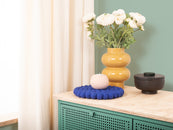 De onderzetter Isa in de kleur koningsblauw combineert functionaliteit met een charmante uitstraling. Robuust, hittebestendig, water- en vuilafstotend en aan beide zijden te gebruiken. Gemaakt van pure scheerwol, met de hand vervaardigd in Nepal onder eerlijke omstandigheden.