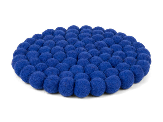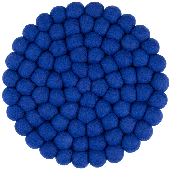 Ronde, koningsblauwe onderzetter van pure scheerwol | myfelt