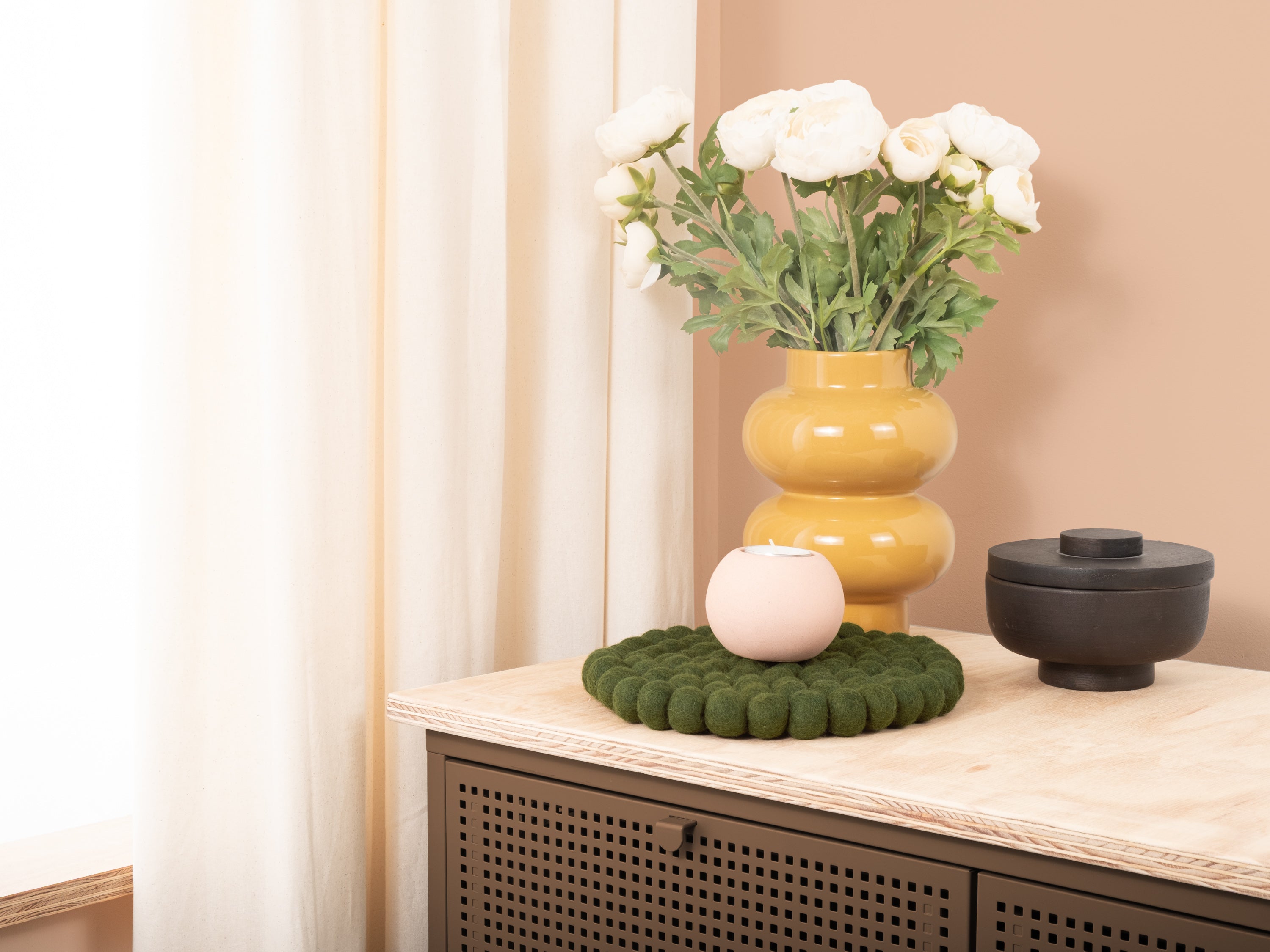 Ronde, donkergroene onderzetter van pure scheerwol | myfelt