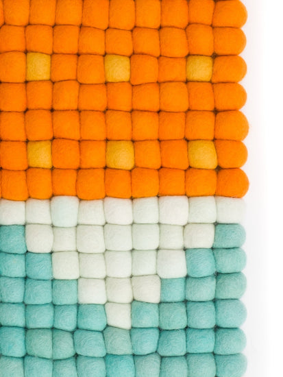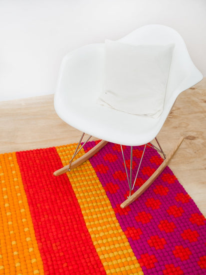 Rechthoekig Vilten boltapijt van zuivere scheerwol.
