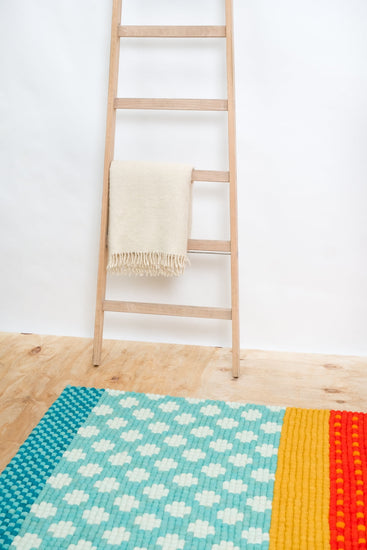 Rechthoekig Vilten boltapijt van zuivere scheerwol.