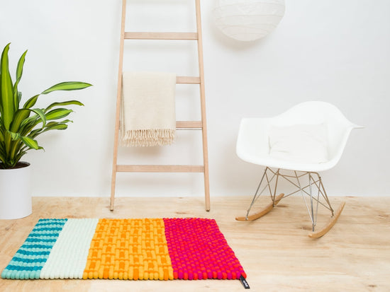 Rechthoekig Vilten boltapijt van zuivere scheerwol.