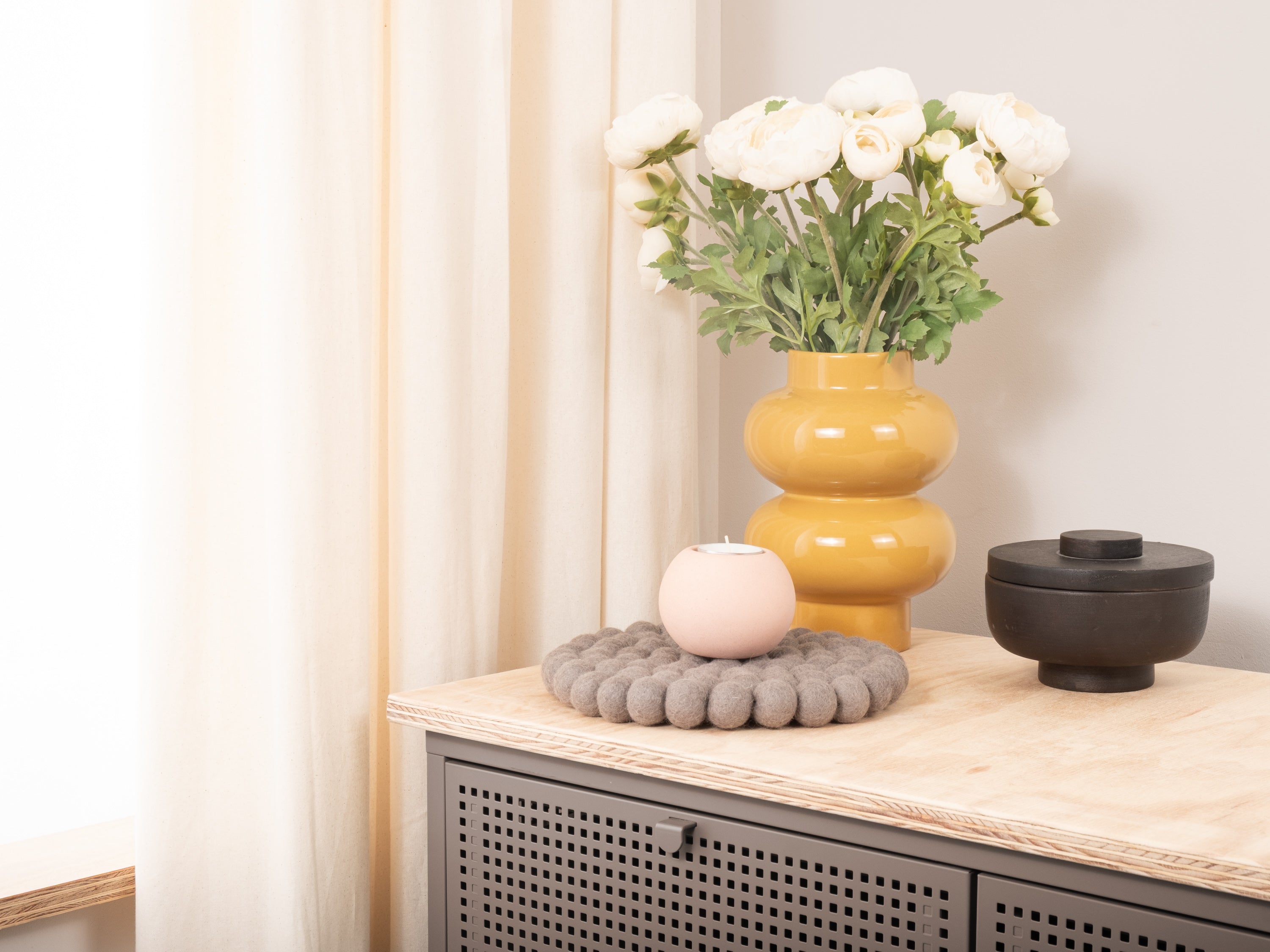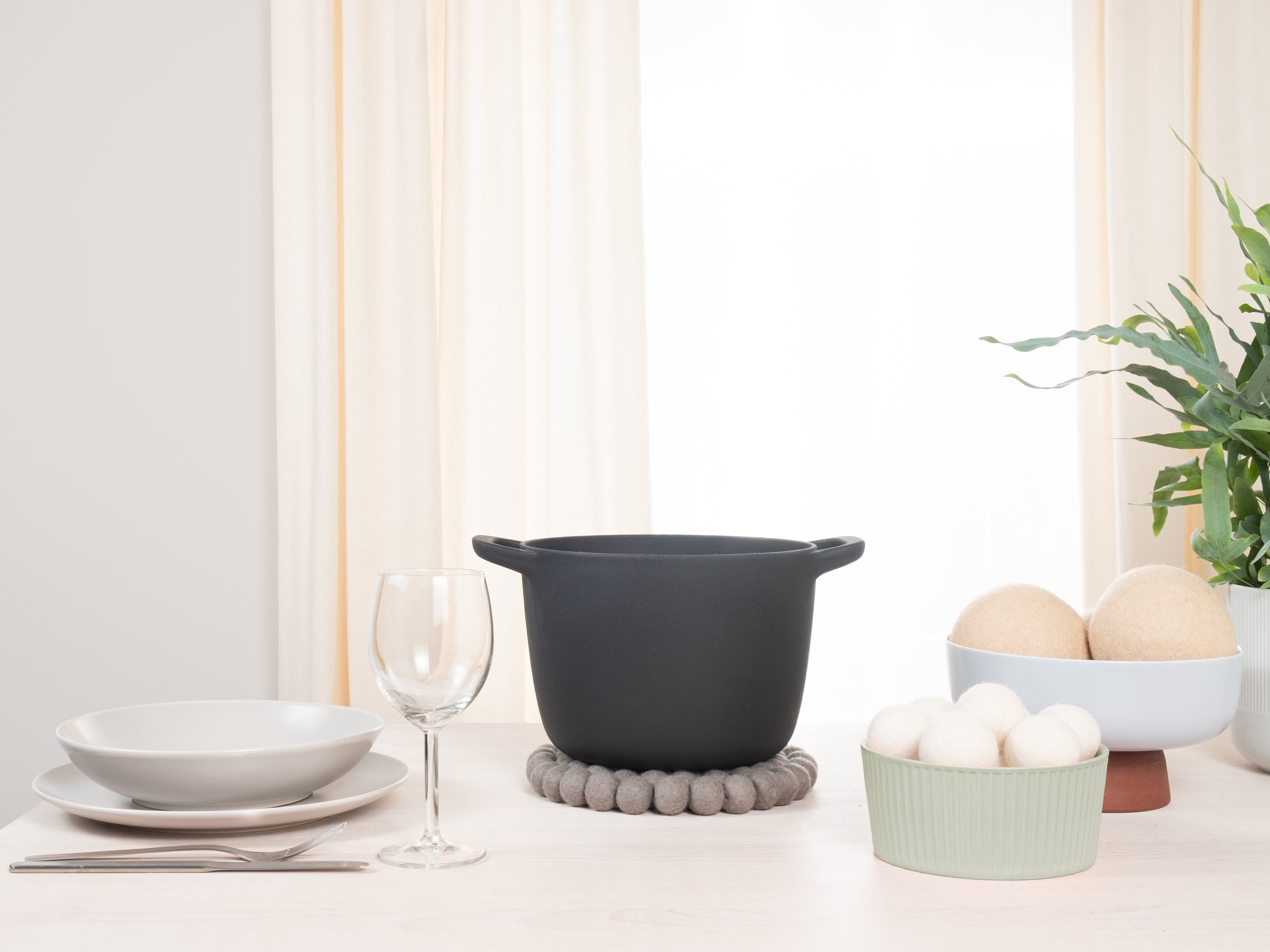 Ronde, grijze onderzetter van pure scheerwol | myfelt