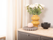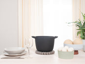 De onderzetter Kian in de kleur grijs combineert functionaliteit met een charmante uitstraling. Robuust, hittebestendig, water- en vuilafstotend en aan beide zijden te gebruiken. Gemaakt van pure scheerwol, met de hand vervaardigd in Nepal onder eerlijke omstandigheden.