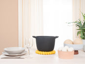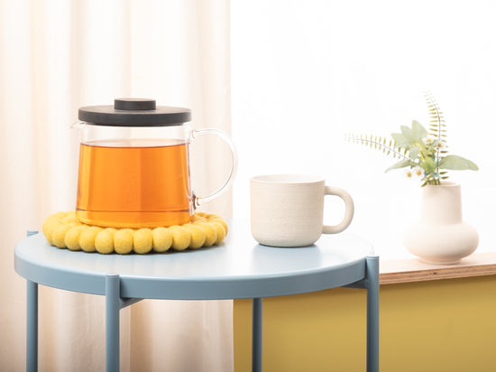 De onderzetter Kira in de kleur geel combineert functionaliteit met een charmante uitstraling. Robuust, hittebestendig, water- en vuilafstotend en aan beide zijden te gebruiken. Gemaakt van pure scheerwol, met de hand vervaardigd in Nepal onder eerlijke omstandigheden.