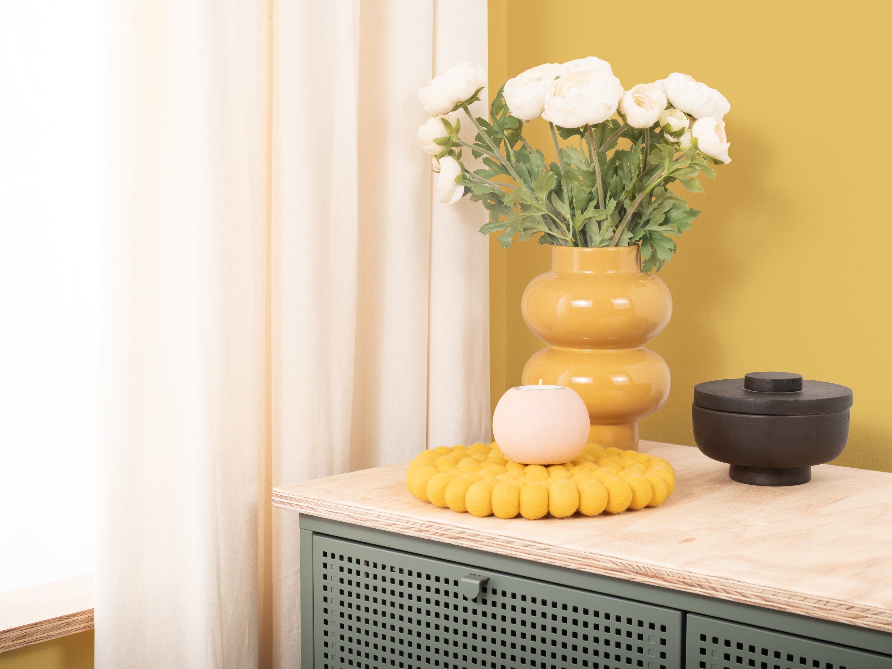 Ronde, gele onderzetter van pure scheerwol | myfelt