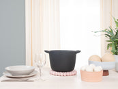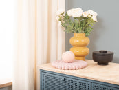 De onderzetter Mona in de kleur zachtroze combineert functionaliteit met een charmante uitstraling. Robuust, hittebestendig, water- en vuilafstotend en aan beide zijden te gebruiken. Gemaakt van pure scheerwol, met de hand vervaardigd in Nepal onder eerlijke omstandigheden.