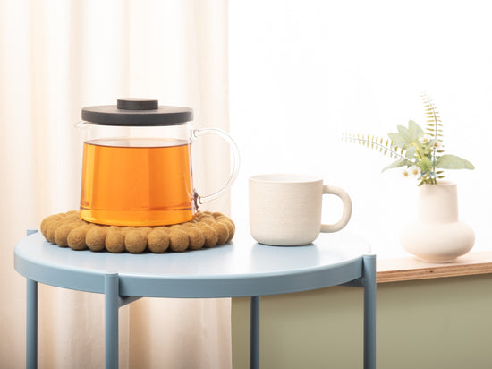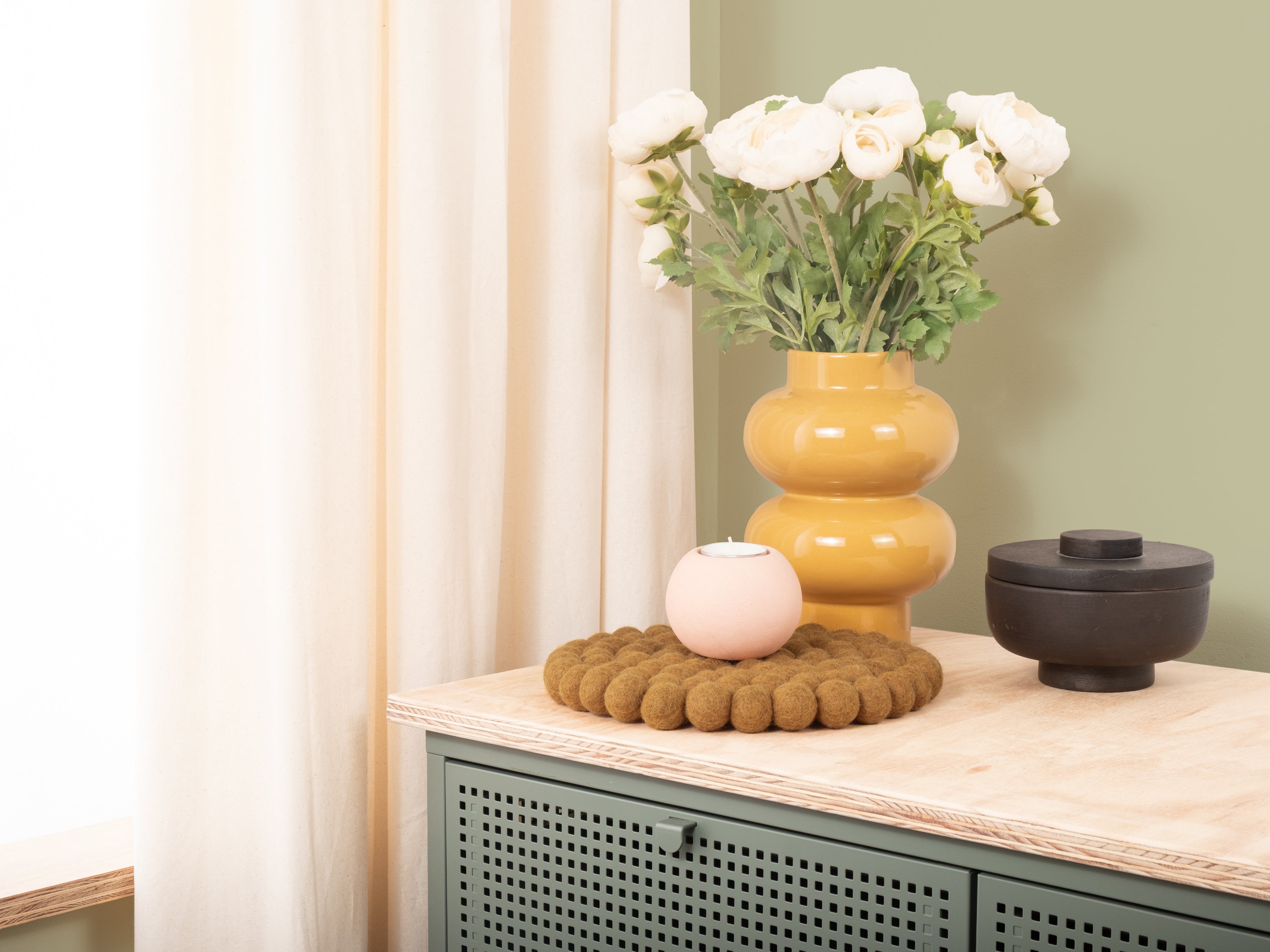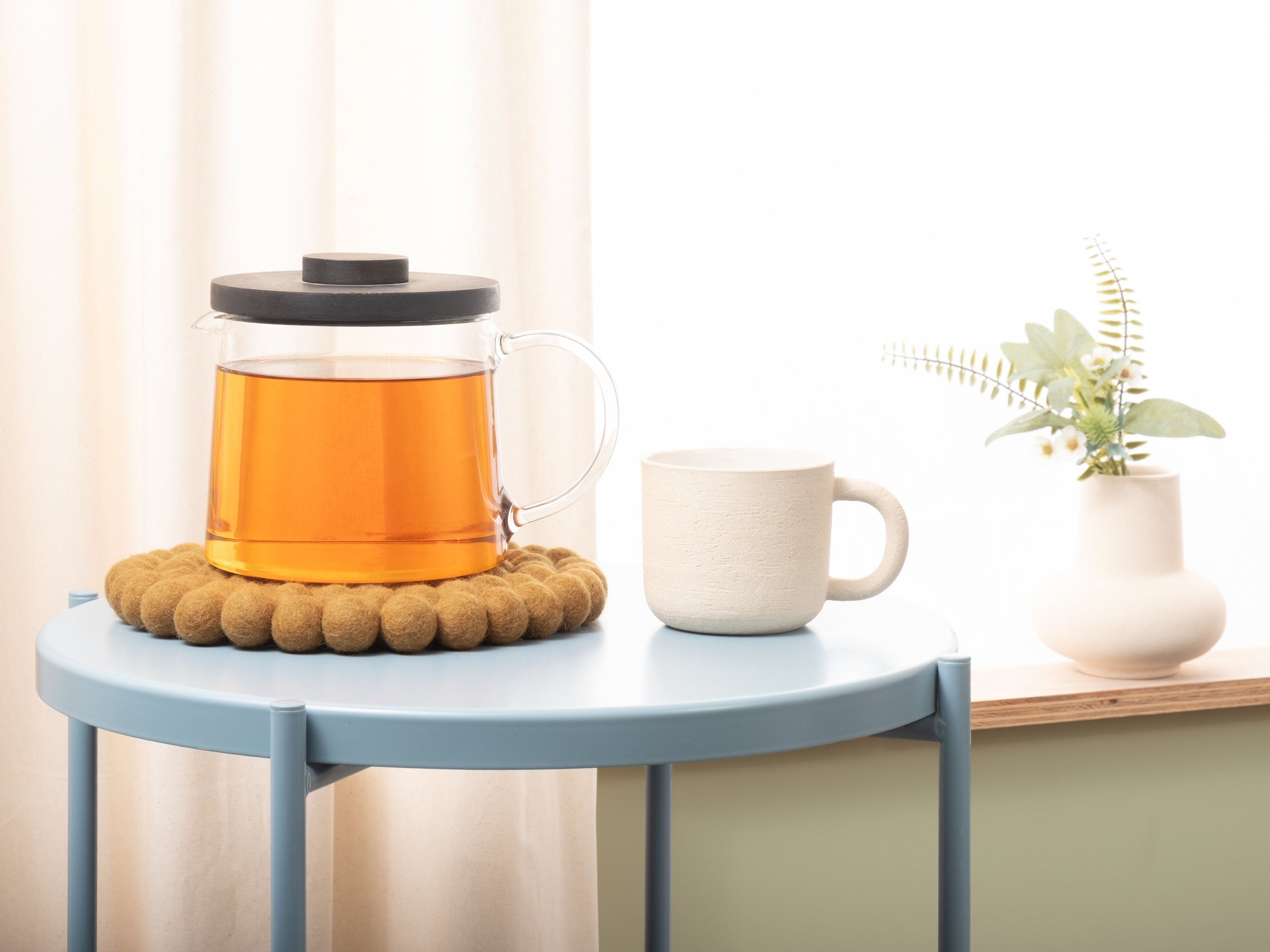 Ronde, karamelkleurige onderzetter van pure scheerwol | myfelt