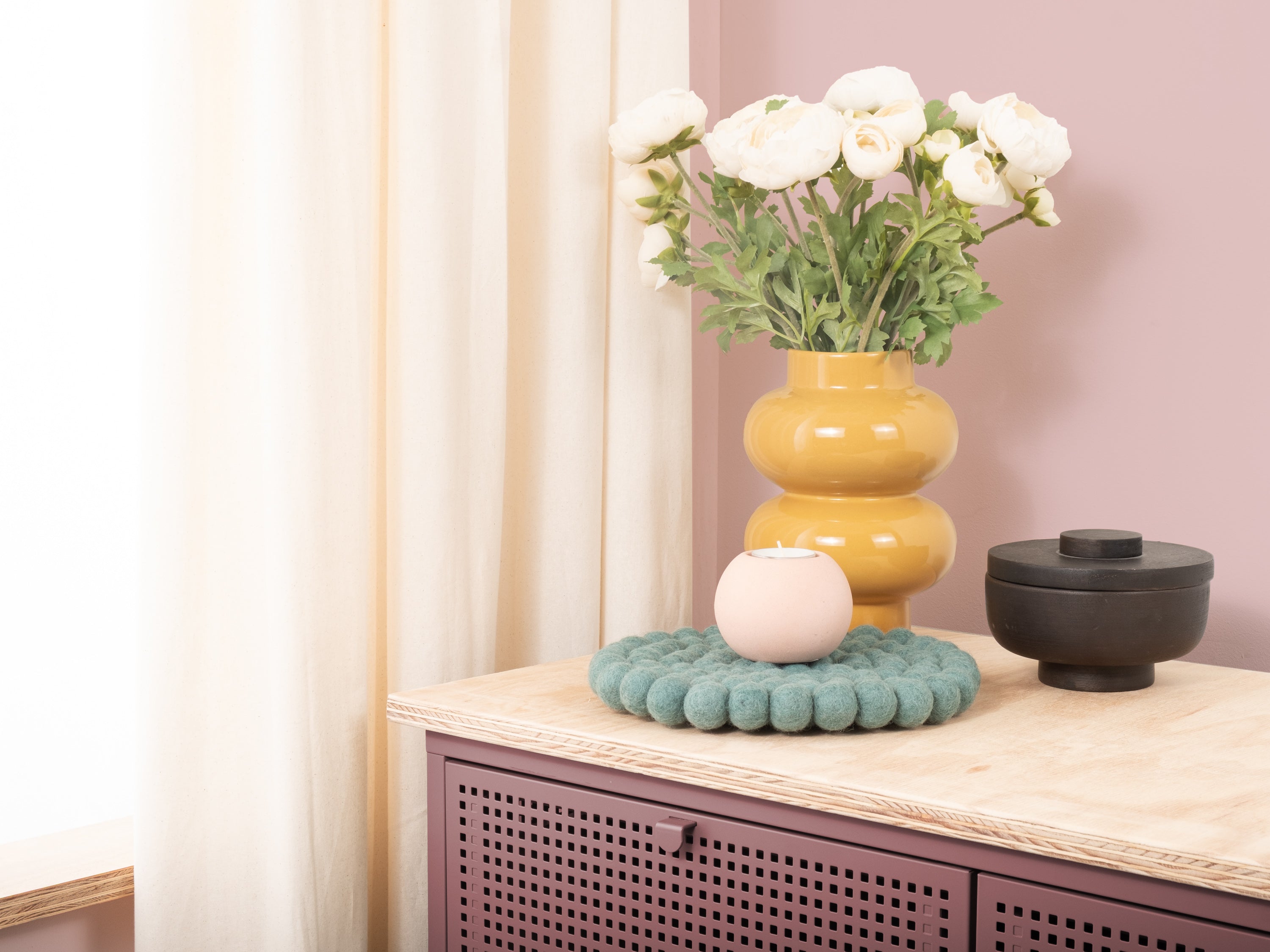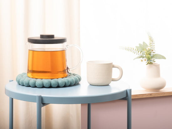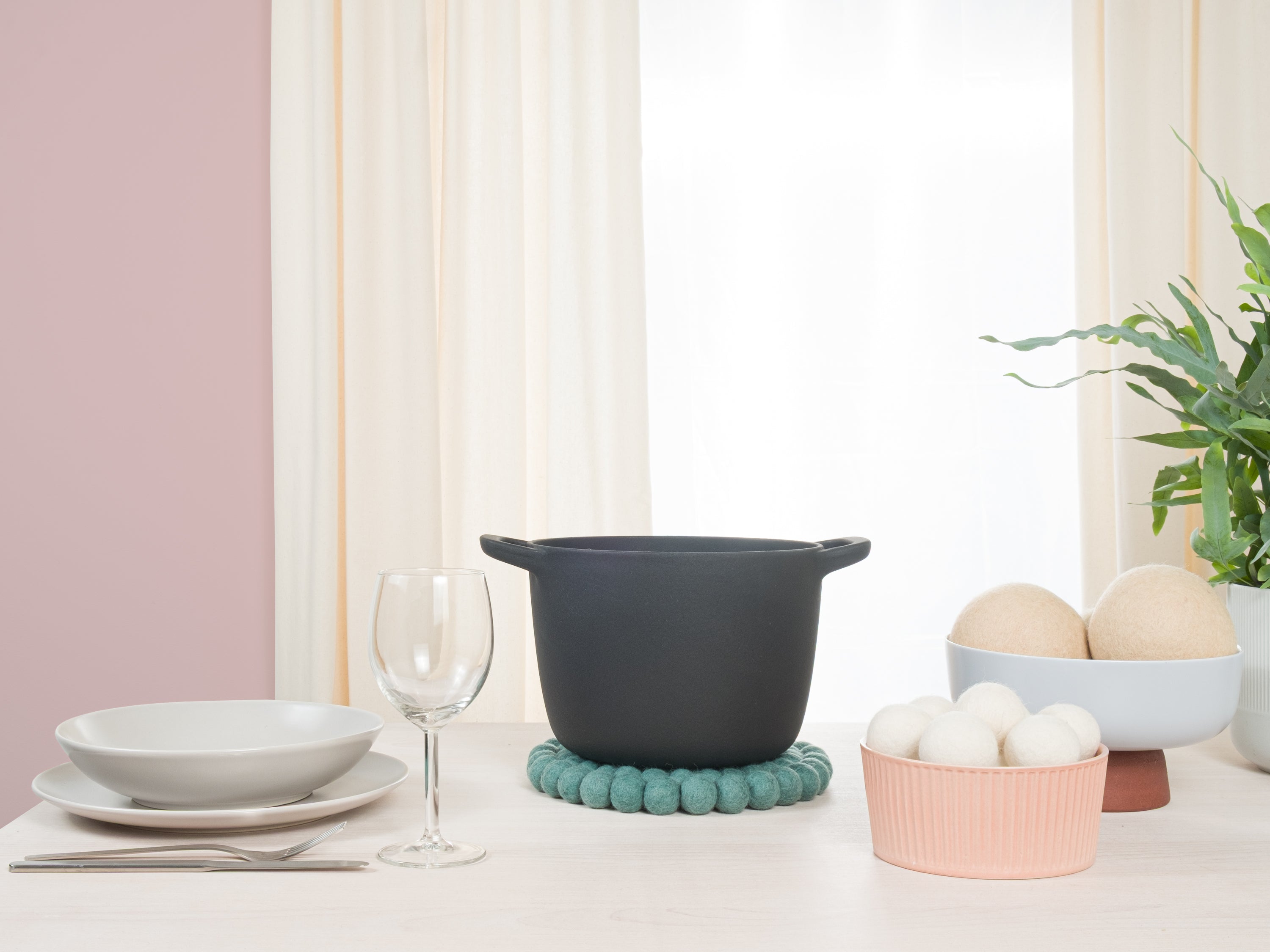 De onderzetter Taro in de kleur aqua combineert functionaliteit met een charmante uitstraling. Robuust, hittebestendig, water- en vuilafstotend en aan beide zijden te gebruiken. Gemaakt van pure scheerwol, met de hand vervaardigd in Nepal onder eerlijke omstandigheden.