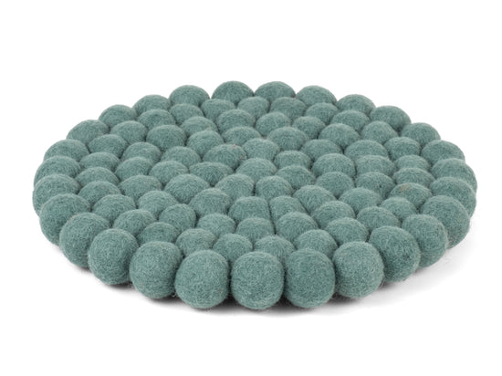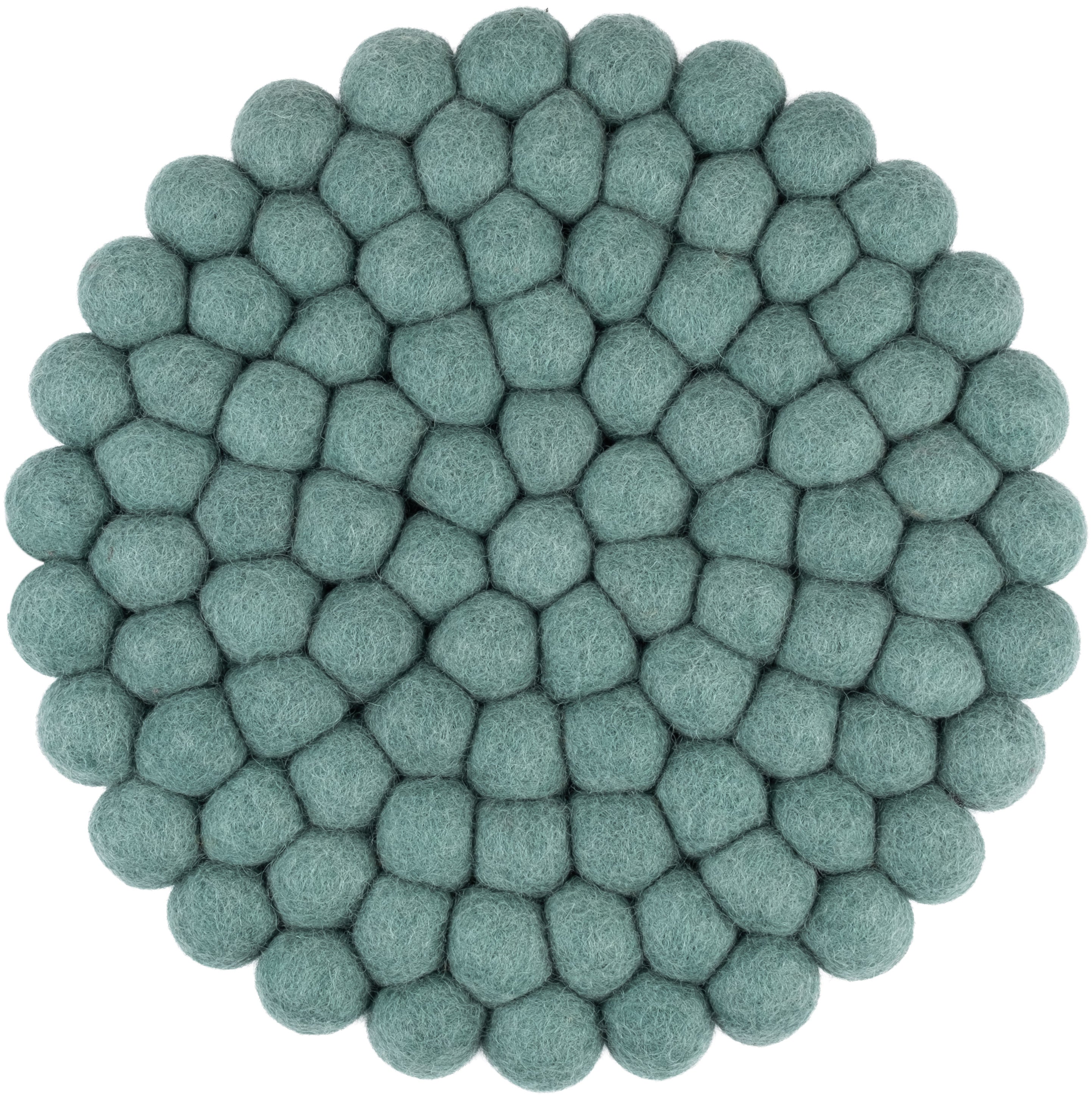 Ronde, aquakleurige onderzetter van pure scheerwol | myfelt
