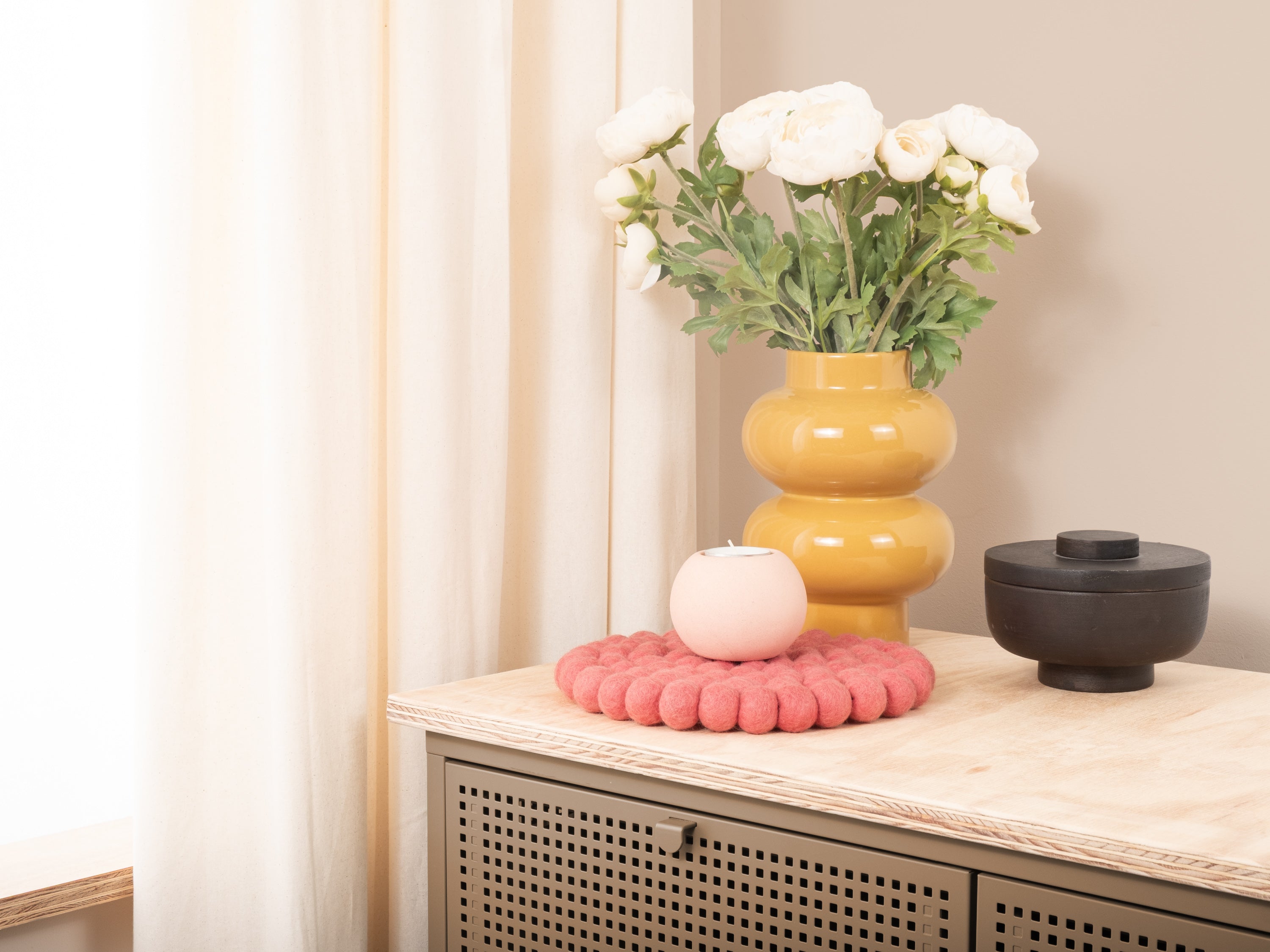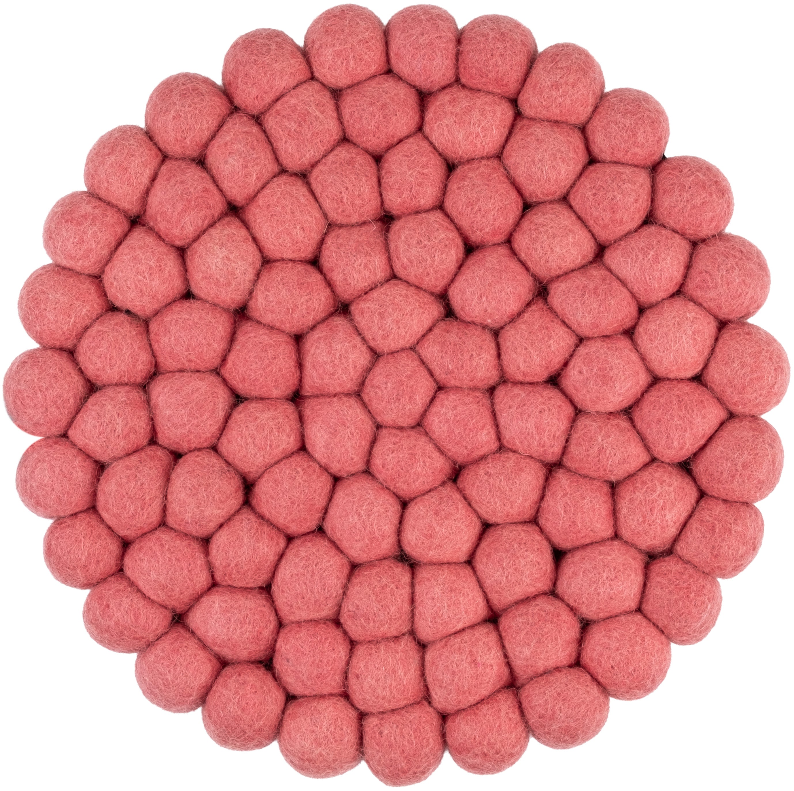 Ronde, koraalroze onderzetter van pure scheerwol | myfelt